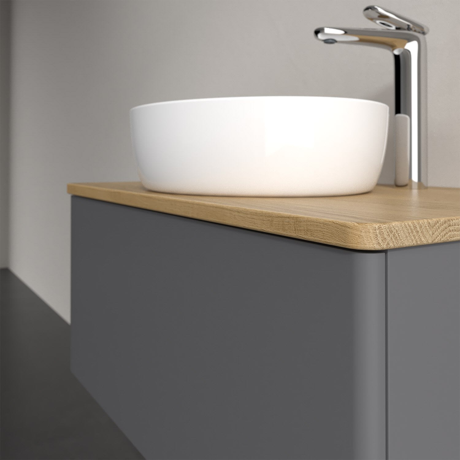 Mit dem wandhängenden Waschtischunterschrank der Kollektion Antao wird ein natürliches und gemütliches Flair am Waschplatz geschaffen. Dafür sorgen die sanfte Formsprache und die abgerundete Kanten des hochwertigen Badmöbels. Die wichtigsten Badutensilien für die tägliche Routine können seitlich des Waschtischs auf die Waschtischplatte gestellt werden. Ansonsten bietet ein extra hoher Auszug inklusive warmweißer Beleuchtung und Antirutschboden ausreichend Platz für weitere Produkte, die garantiert bleiben, wo sie hingehören. Der Unterschrank verfügt zudem über einen Vollauszug und Selbsteinzug mit SoftClosing Funktion, damit er bequem und mühelos geöffnet und geschlossen werden kann. Gewohnte Qualität von Villeroy & Boch! Für eine besonders leichte Pflege sorgt die mehrschichtig deckend lackierte Oberfläche. Bei der Ausführung in Massivholz wird dank des verarbeiteten Massivholzes jedes Möbel zu einem Unikat, das sich durch das lebendige Naturmaterial durch seine einzigartige Struktur und Maserung auszeichnet.