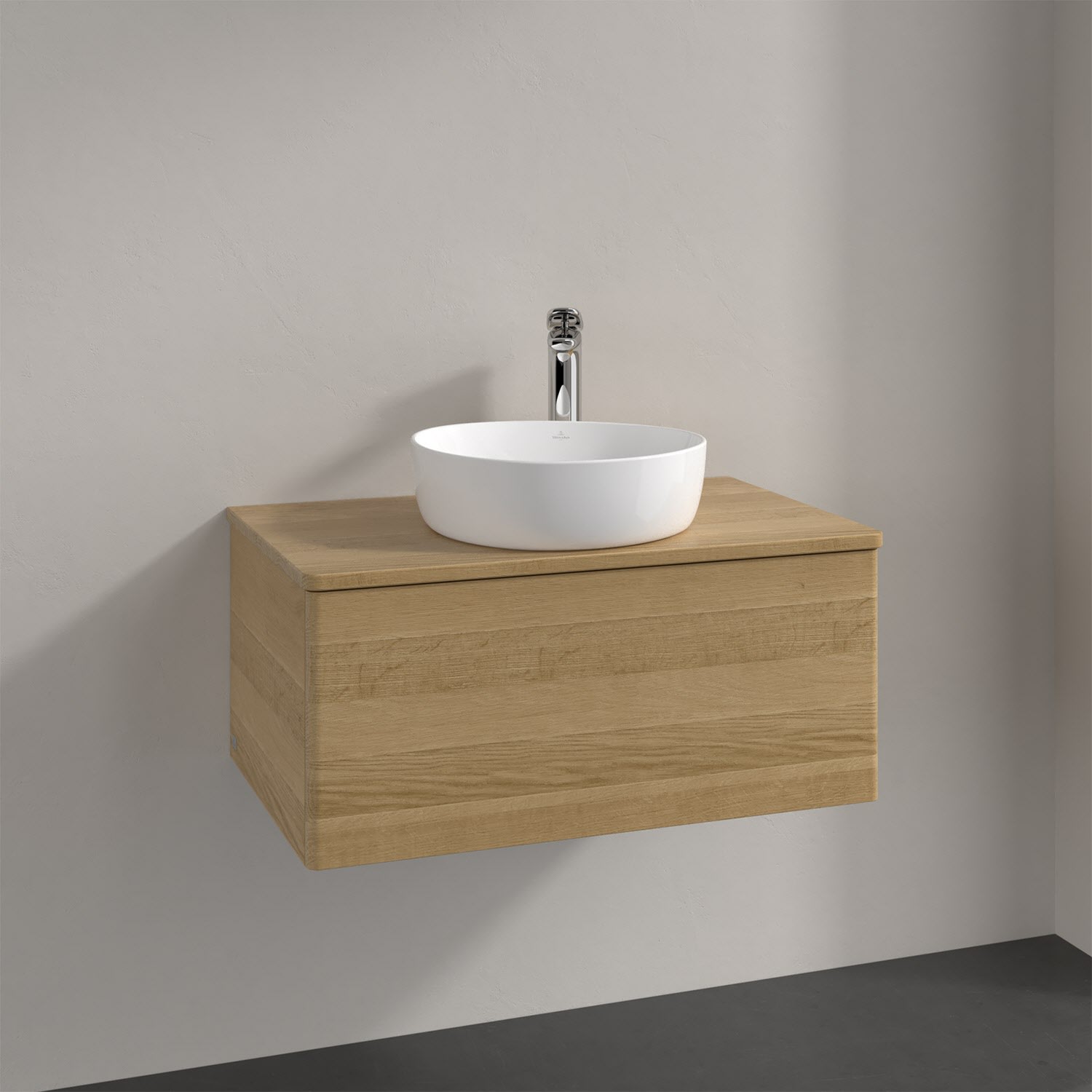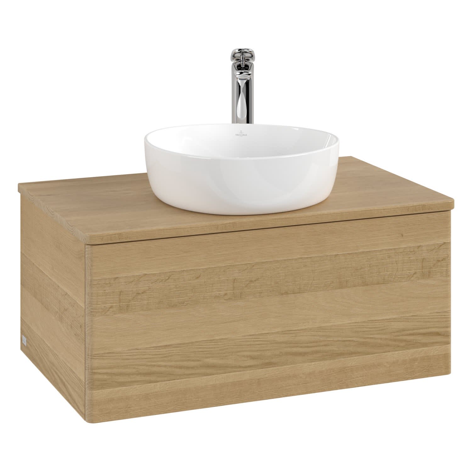 Villeroy & Boch Antao Waschbeckenunterschrank, 80 x 36 cm, 1 Auszug mit LED-Licht, Front ohne Struktur, mit Hahnloch