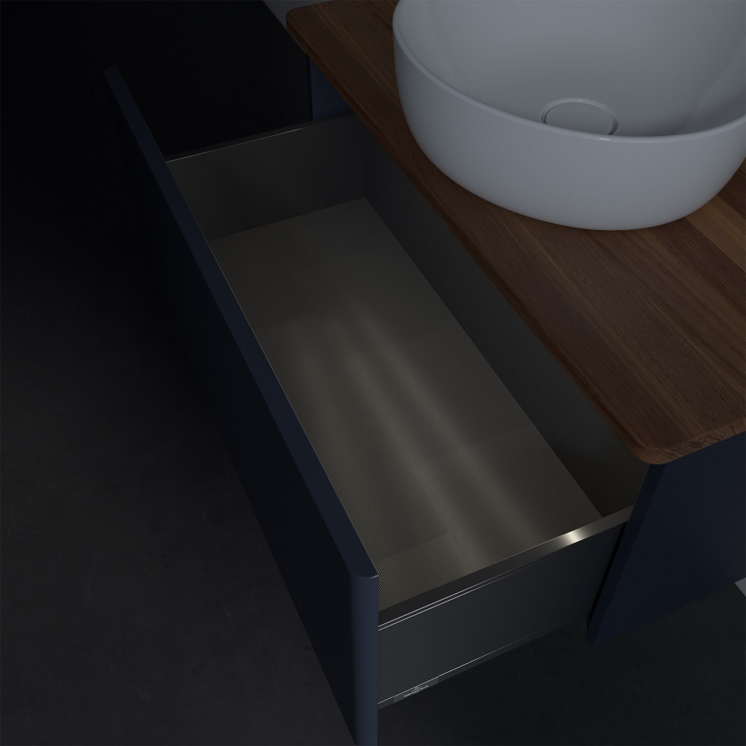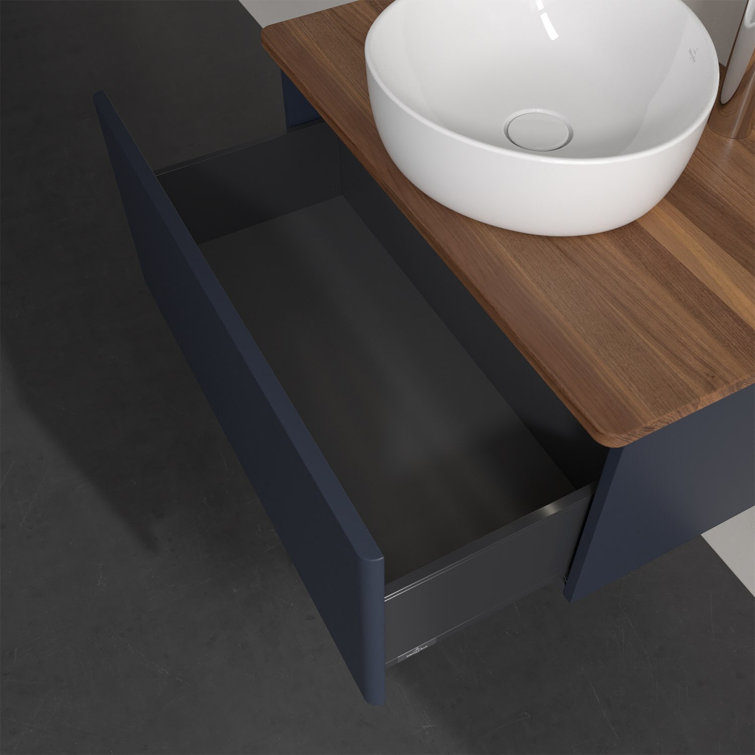 Mit dem wandhängenden Waschtischunterschrank der Kollektion Antao wird ein natürliches und gemütliches Flair am Waschplatz geschaffen. Dafür sorgen die sanfte Formsprache und die abgerundete Kanten des hochwertigen Badmöbels. Die wichtigsten Badutensilien für die tägliche Routine können seitlich des Waschtischs auf die Waschtischplatte gestellt werden. Ansonsten bietet ein extra hoher Auszug inklusive warmweißer Beleuchtung und Antirutschboden ausreichend Platz für weitere Produkte, die garantiert bleiben, wo sie hingehören. Der Unterschrank verfügt zudem über einen Vollauszug und Selbsteinzug mit SoftClosing Funktion, damit er bequem und mühelos geöffnet und geschlossen werden kann. Gewohnte Qualität von Villeroy & Boch! Für eine besonders leichte Pflege sorgt die mehrschichtig deckend lackierte Oberfläche. Bei der Ausführung in Massivholz wird dank des verarbeiteten Massivholzes jedes Möbel zu einem Unikat, das sich durch das lebendige Naturmaterial durch seine einzigartige Struktur und Maserung auszeichnet.