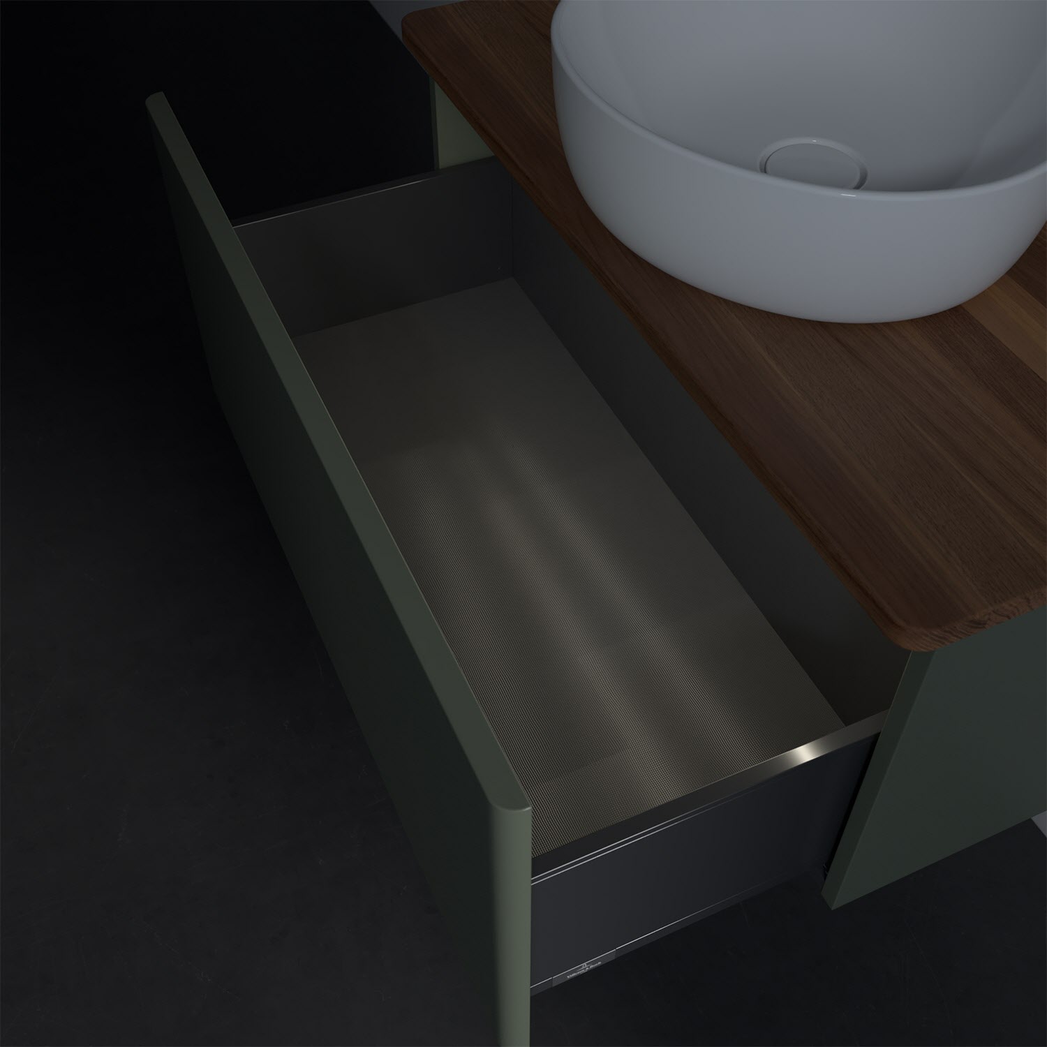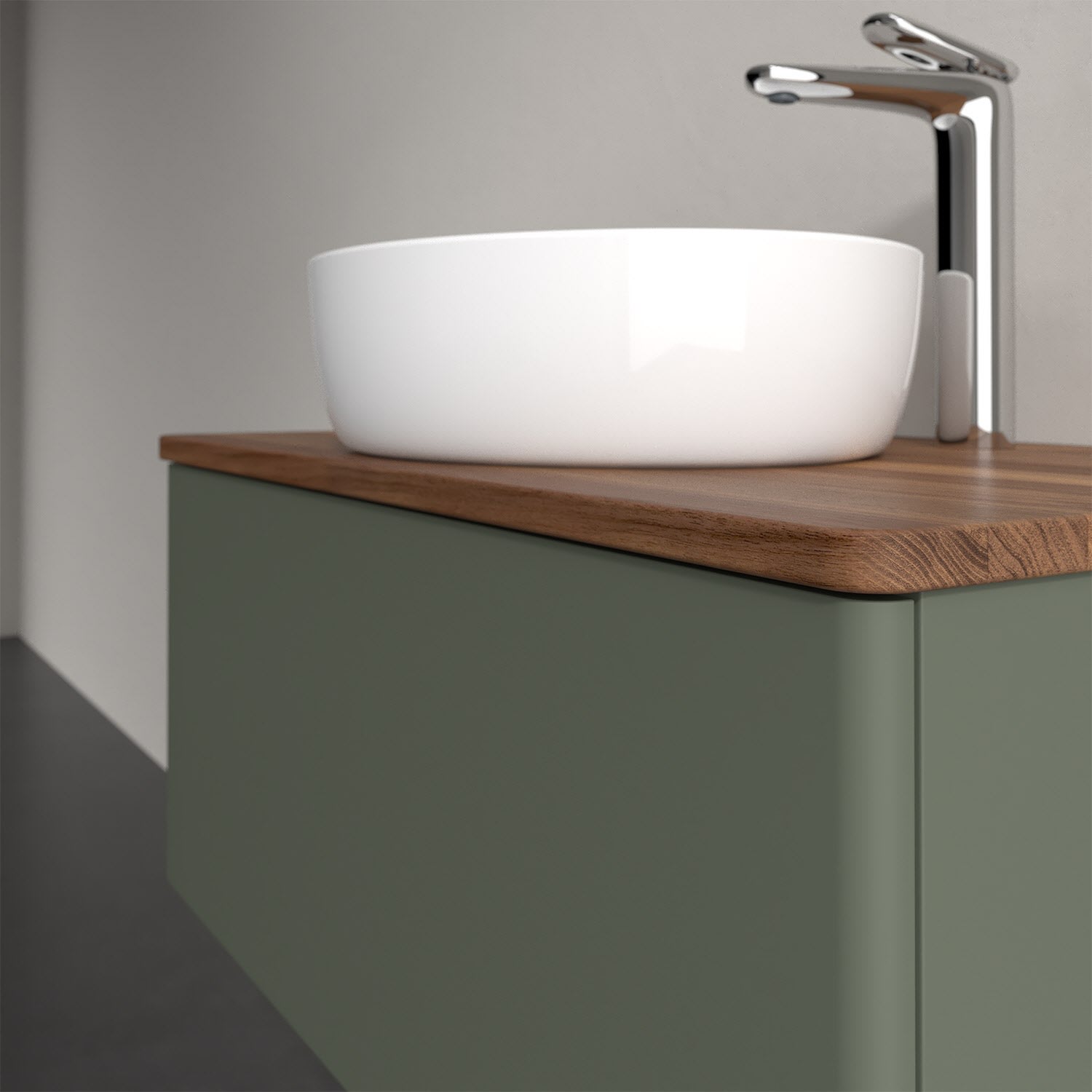 Mit dem wandhängenden Waschtischunterschrank der Kollektion Antao wird ein natürliches und gemütliches Flair am Waschplatz geschaffen. Dafür sorgen die sanfte Formsprache und die abgerundete Kanten des hochwertigen Badmöbels. Die wichtigsten Badutensilien für die tägliche Routine können seitlich des Waschtischs auf die Waschtischplatte gestellt werden. Ansonsten bietet ein extra hoher Auszug inklusive warmweißer Beleuchtung und Antirutschboden ausreichend Platz für weitere Produkte, die garantiert bleiben, wo sie hingehören. Der Unterschrank verfügt zudem über einen Vollauszug und Selbsteinzug mit SoftClosing Funktion, damit er bequem und mühelos geöffnet und geschlossen werden kann. Gewohnte Qualität von Villeroy & Boch! Für eine besonders leichte Pflege sorgt die mehrschichtig deckend lackierte Oberfläche. Bei der Ausführung in Massivholz wird dank des verarbeiteten Massivholzes jedes Möbel zu einem Unikat, das sich durch das lebendige Naturmaterial durch seine einzigartige Struktur und Maserung auszeichnet.