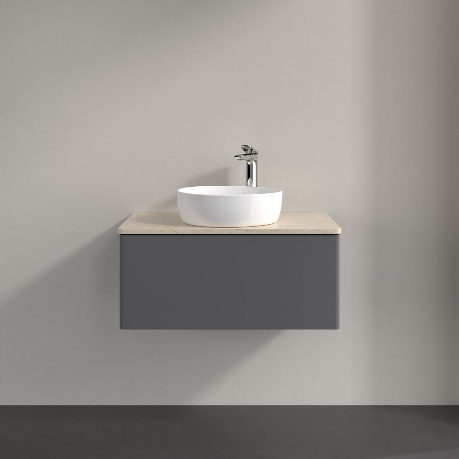 Villeroy & Boch Antao Waschbeckenunterschrank, 80 x 36 cm, 1 Auszug mit LED-Licht, Front ohne Struktur, mit Hahnloch