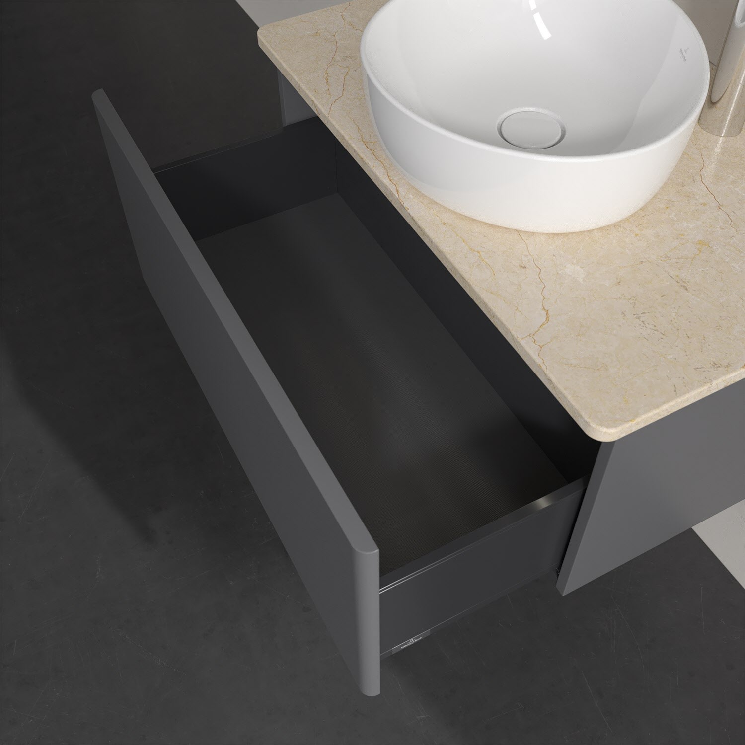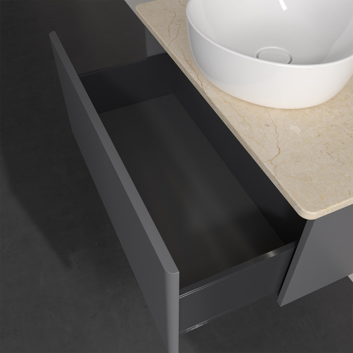 - kein Umfallen oder Verrutschen von Pflegeprodukten in den Schubladen dank rutschhemmendem Boden