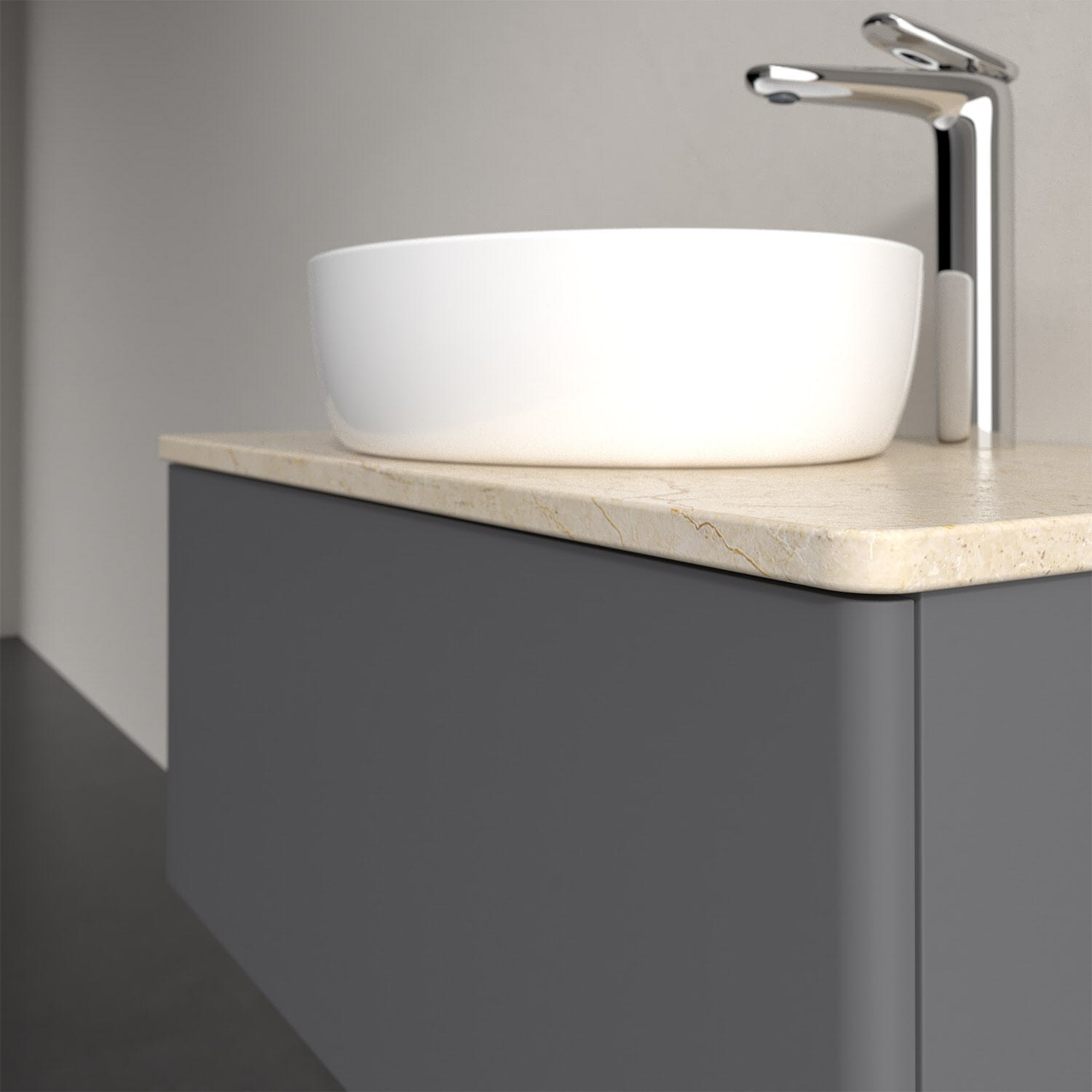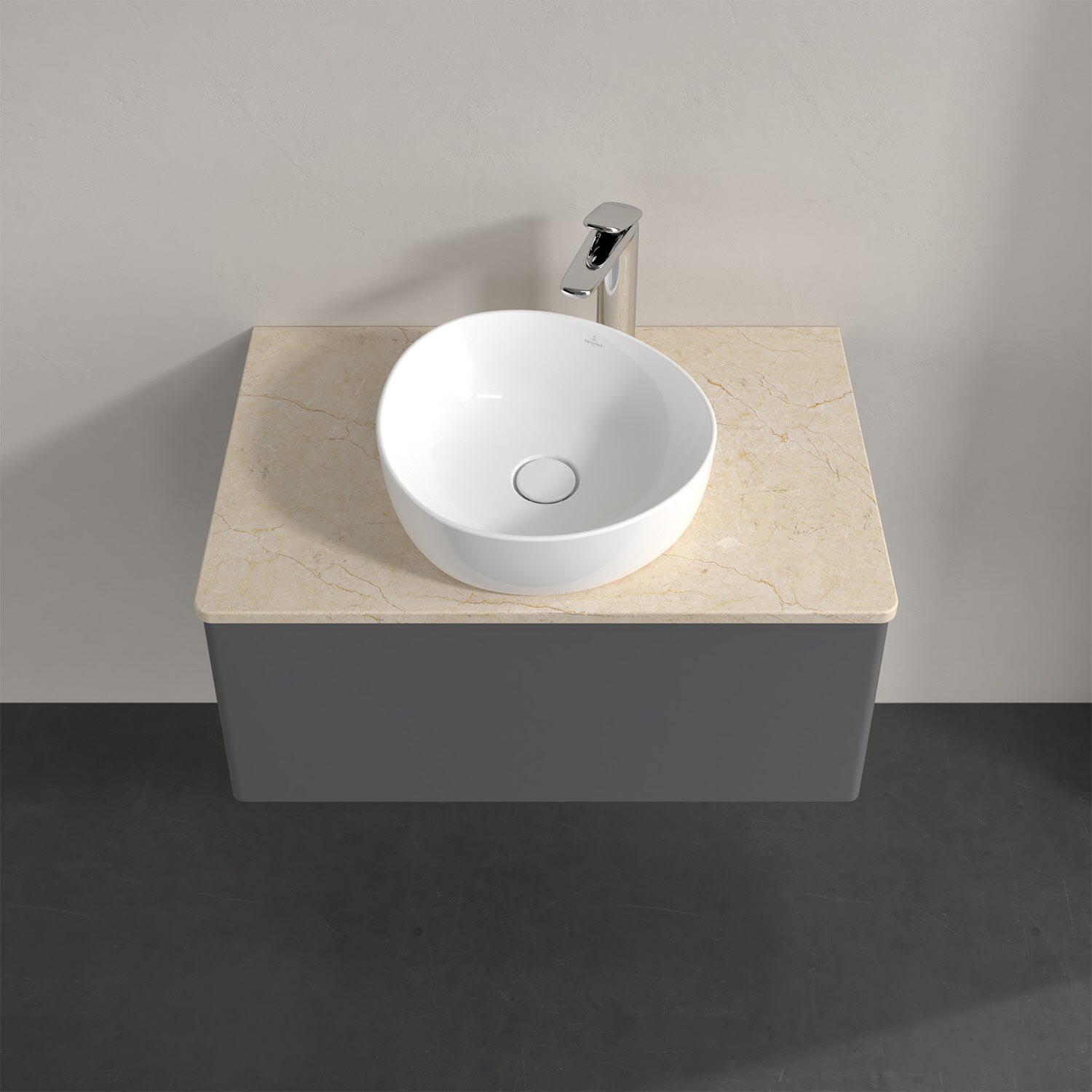 Für diesen Waschbeckenunterschrank stehen Ihnen Aufsatzwaschtische aus verschiedenen Serien zur Verfügung (siehe "Passliste" unter Downloads). Ein ausgewähltes Beispiel finden Sie im Zubehör. Den Waschtisch bitte separat mitbestellen.