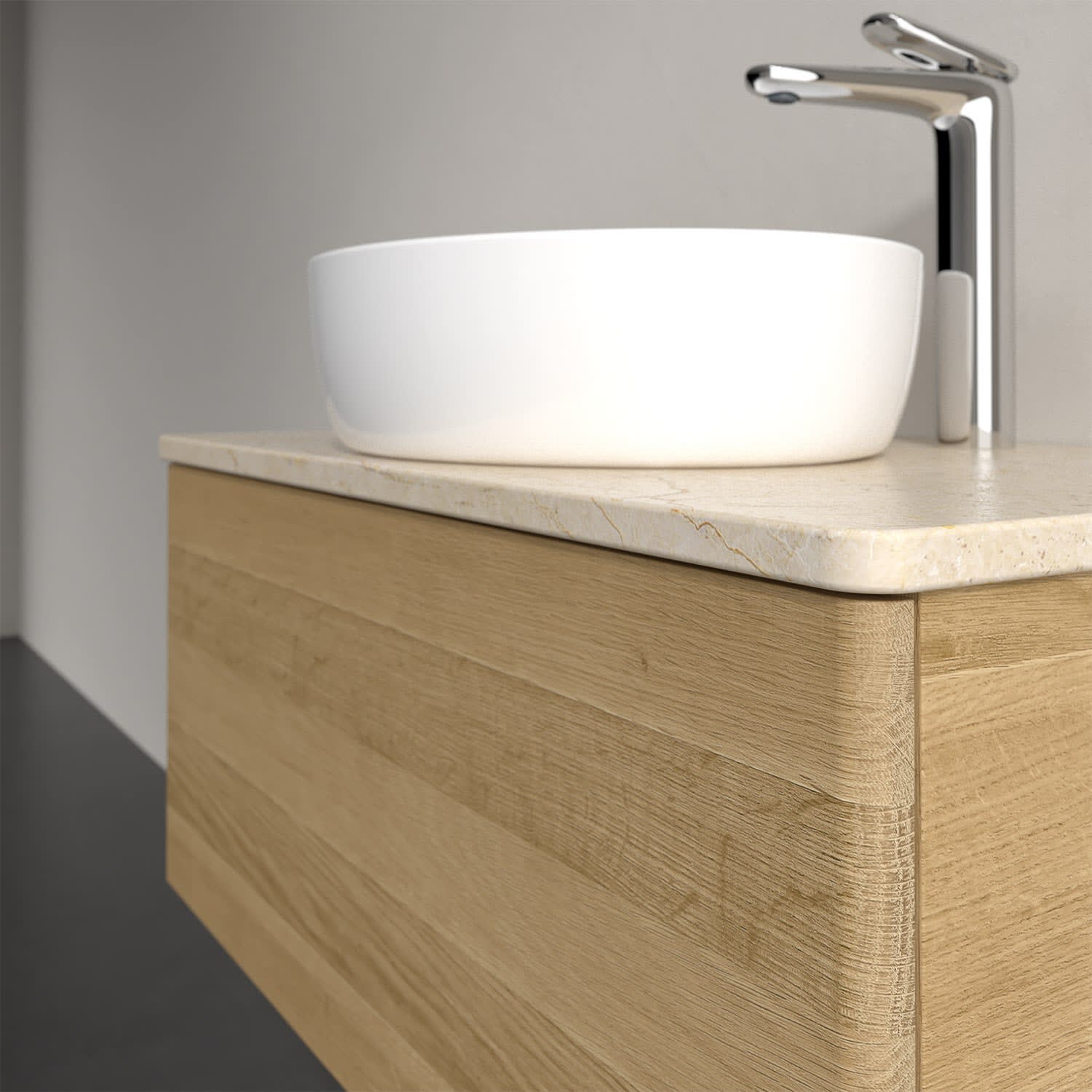 Mit dem wandhängenden Waschtischunterschrank der Kollektion Antao wird ein natürliches und gemütliches Flair am Waschplatz geschaffen. Dafür sorgen die sanfte Formsprache und die abgerundete Kanten des hochwertigen Badmöbels. Die wichtigsten Badutensilien für die tägliche Routine können seitlich des Waschtischs auf die Waschtischplatte gestellt werden. Ansonsten bietet ein extra hoher Auszug inklusive warmweißer Beleuchtung und Antirutschboden ausreichend Platz für weitere Produkte, die garantiert bleiben, wo sie hingehören. Der Unterschrank verfügt zudem über einen Vollauszug und Selbsteinzug mit SoftClosing Funktion, damit er bequem und mühelos geöffnet und geschlossen werden kann. Gewohnte Qualität von Villeroy & Boch! Für eine besonders leichte Pflege sorgt die mehrschichtig deckend lackierte Oberfläche. Bei der Ausführung in Massivholz wird dank des verarbeiteten Massivholzes jedes Möbel zu einem Unikat, das sich durch das lebendige Naturmaterial durch seine einzigartige Struktur und Maserung auszeichnet.