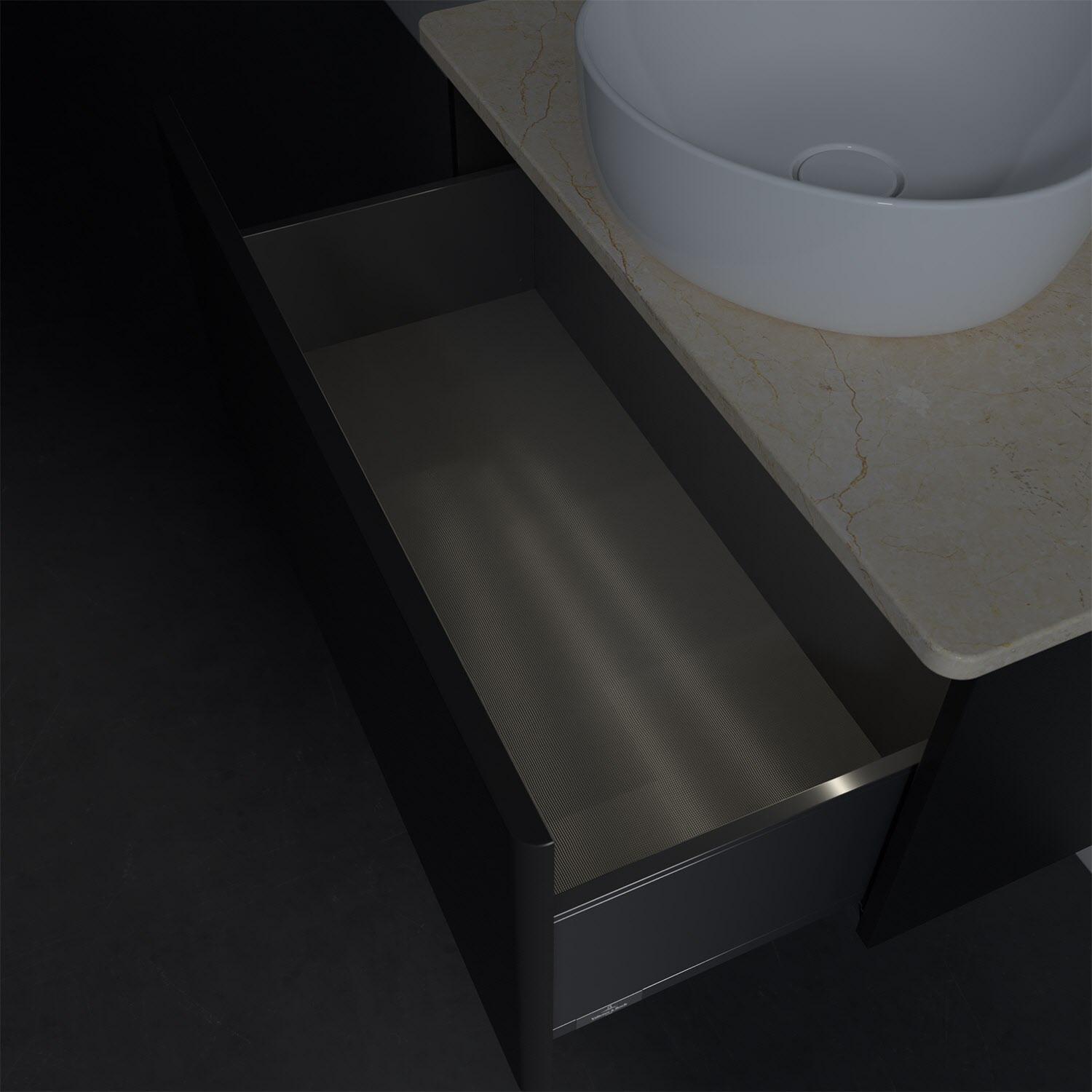 - kein Umfallen oder Verrutschen von Pflegeprodukten in den Schubladen dank rutschhemmendem Boden