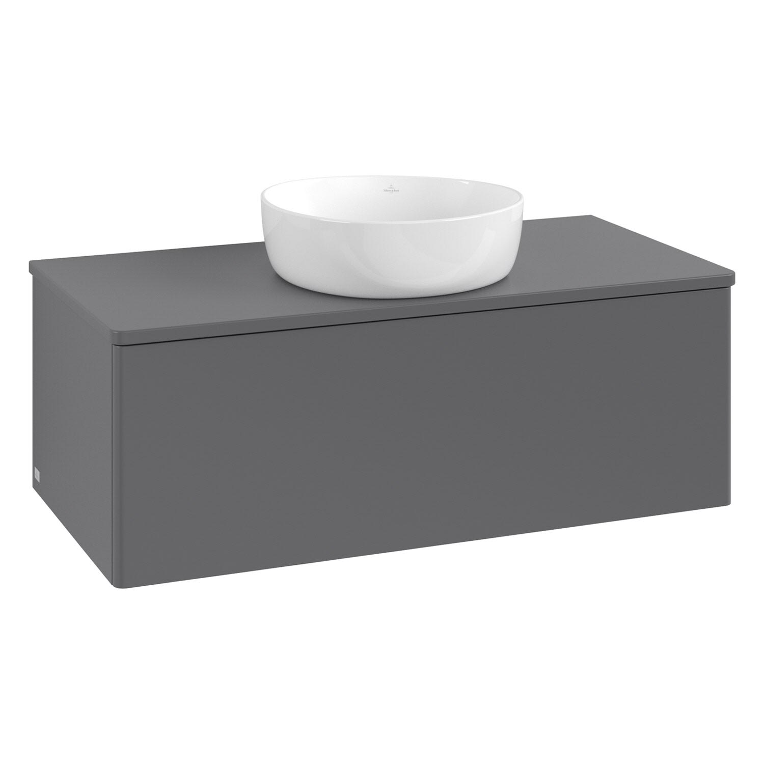 Villeroy & Boch Antao Waschbeckenunterschrank, 100 x 36 cm, 1 Auszug mit LED-Licht, Front ohne Struktur, mit Hahnloch
