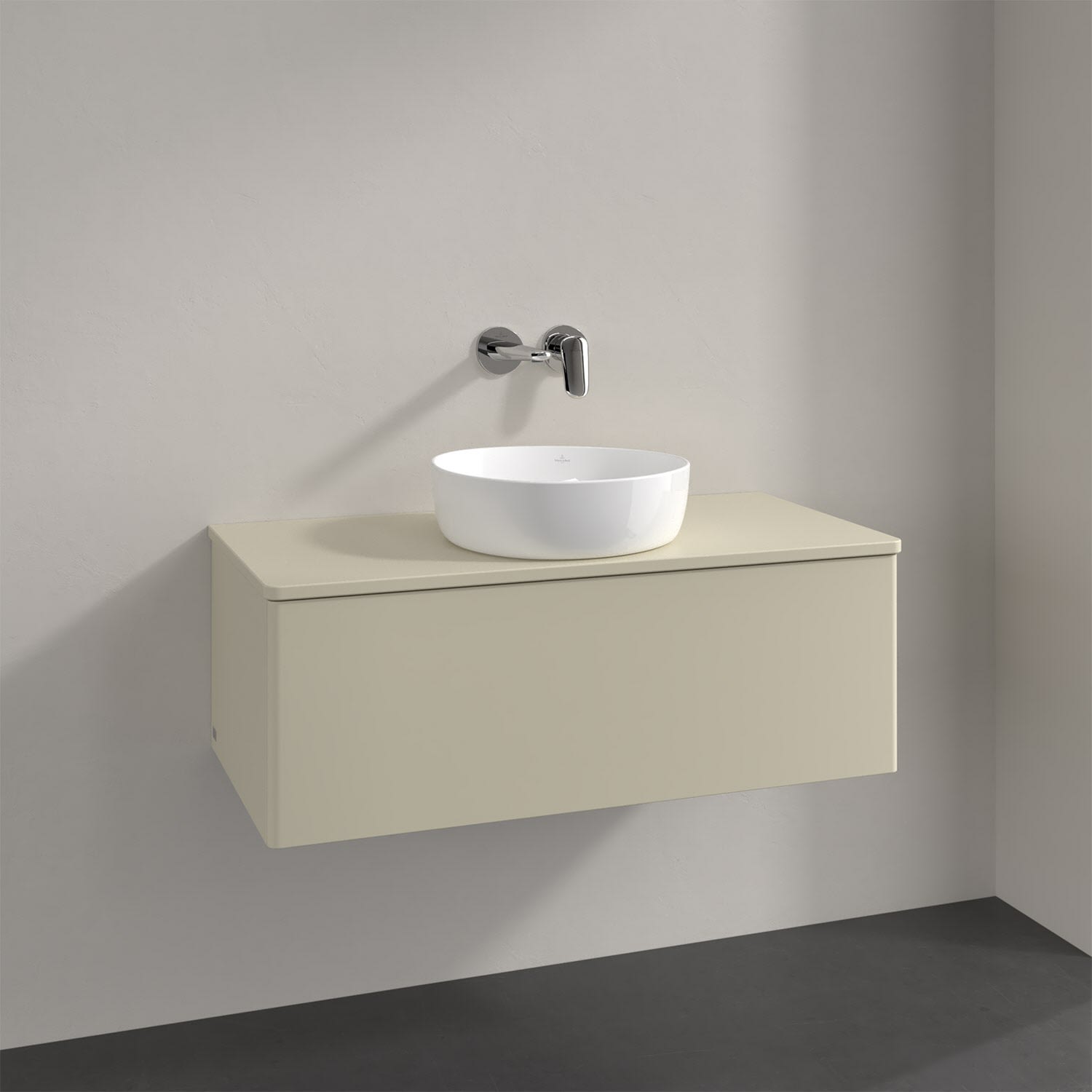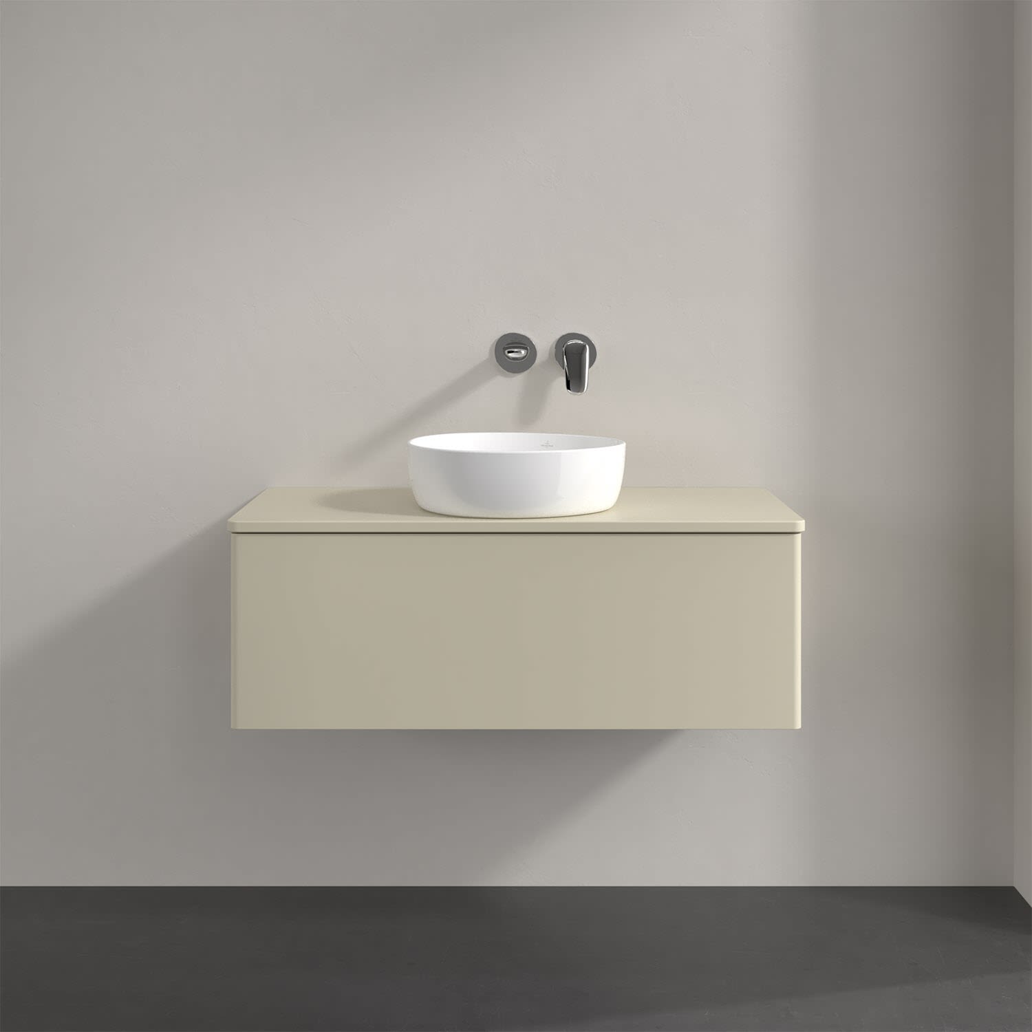 Villeroy & Boch Antao Waschbeckenunterschrank, 100 x 36 cm, 1 Auszug mit LED-Licht, Front ohne Struktur, mit Hahnloch