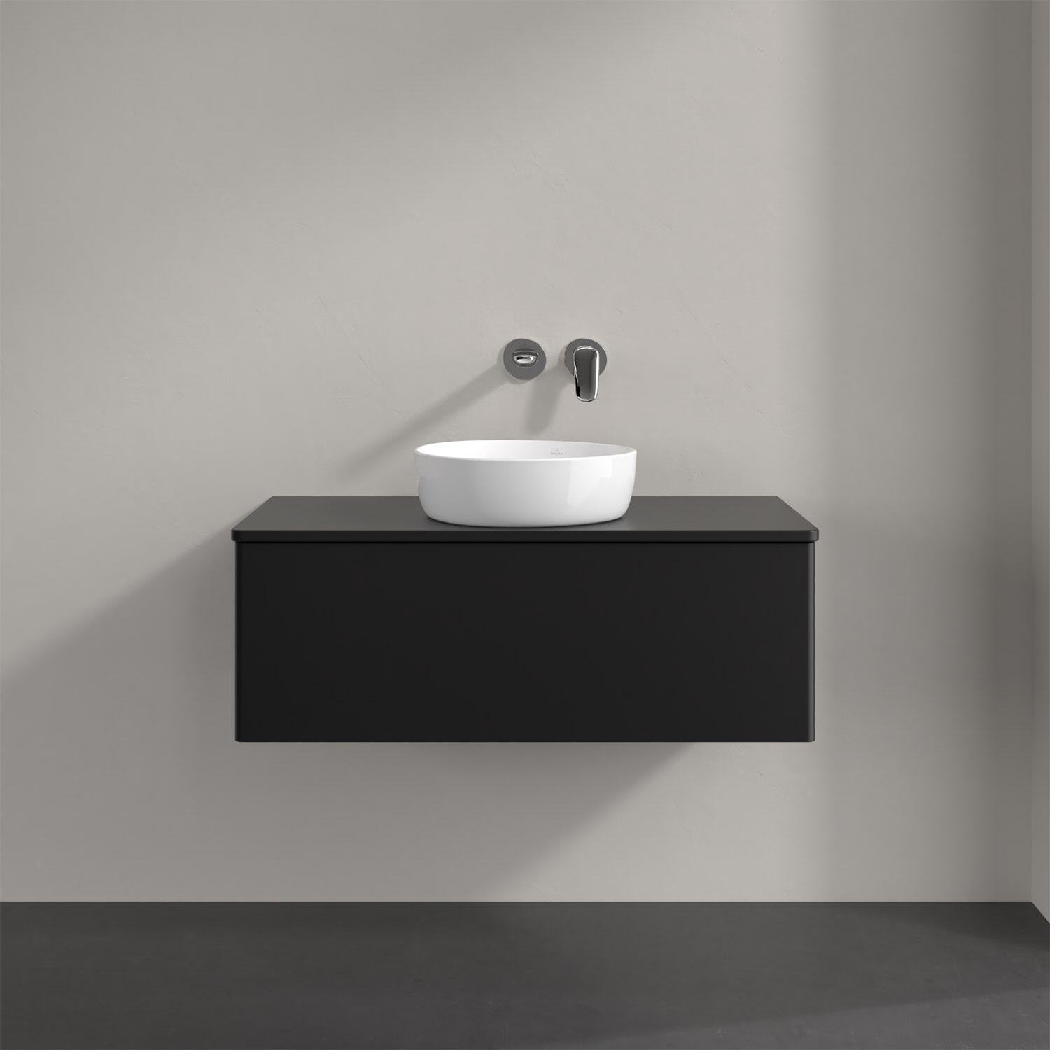 Villeroy & Boch Antao Waschbeckenunterschrank, 100 x 36 cm, 1 Auszug mit LED-Licht, Front ohne Struktur, mit Hahnloch