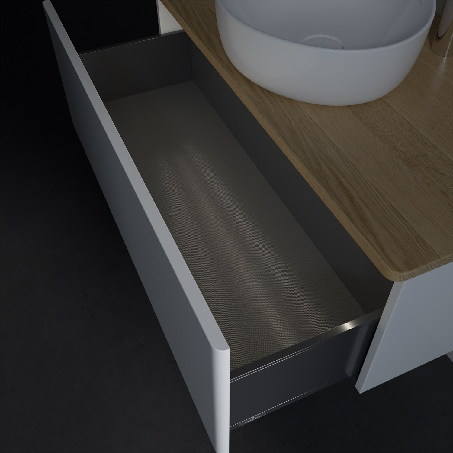 - kein Umfallen oder Verrutschen von Pflegeprodukten in den Schubladen dank rutschhemmendem Boden