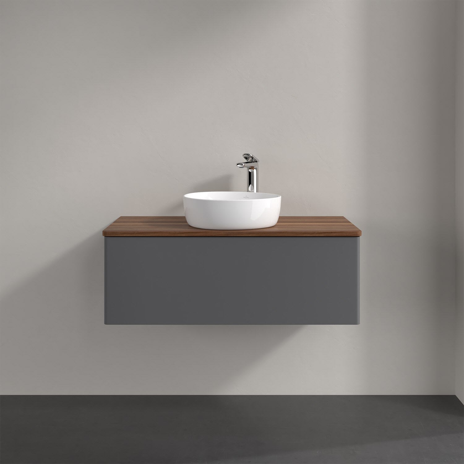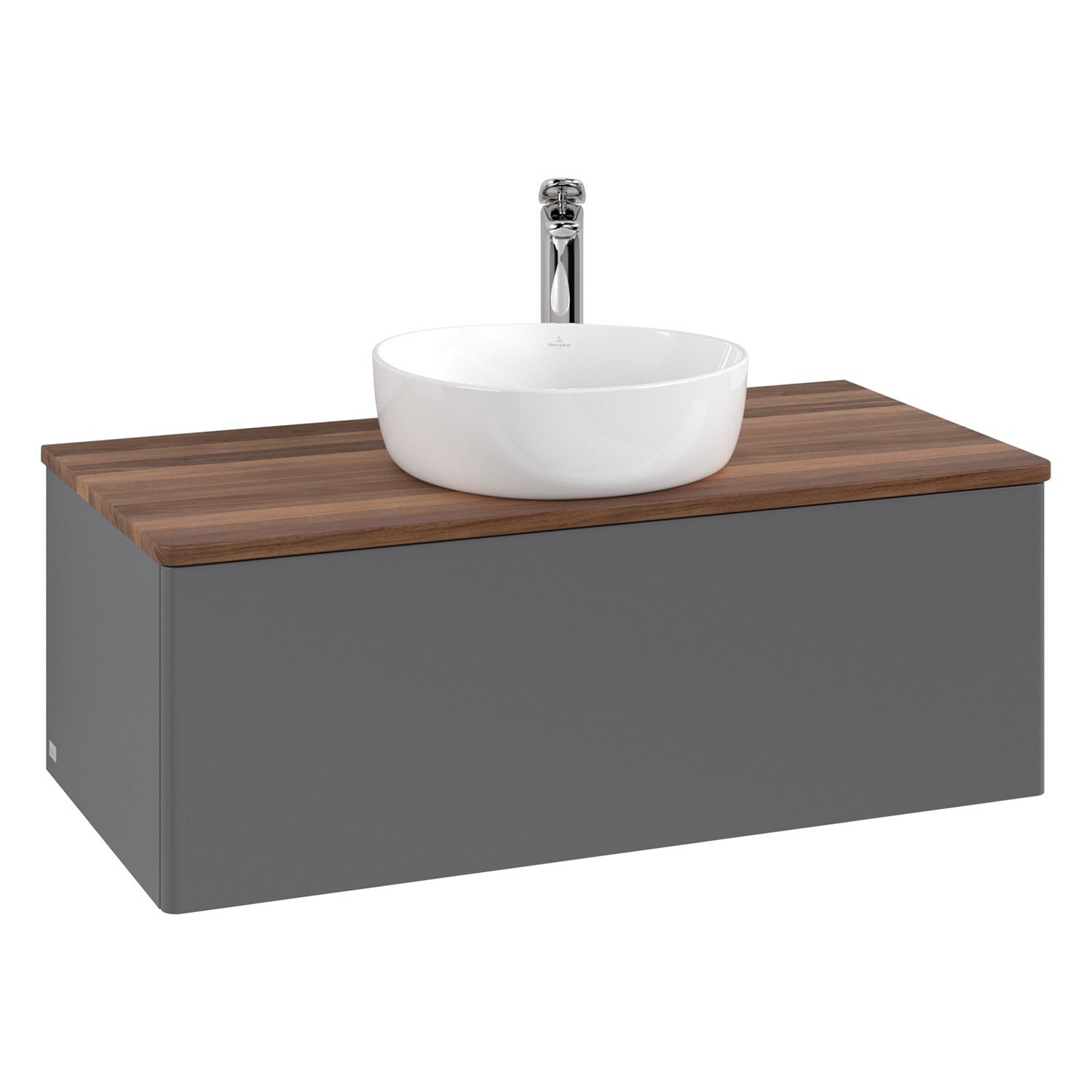 Villeroy & Boch Antao Waschbeckenunterschrank, 100 x 36 cm, 1 Auszug mit LED-Licht, Front ohne Struktur, mit Hahnloch