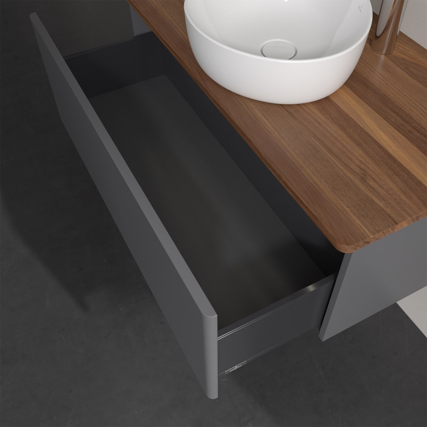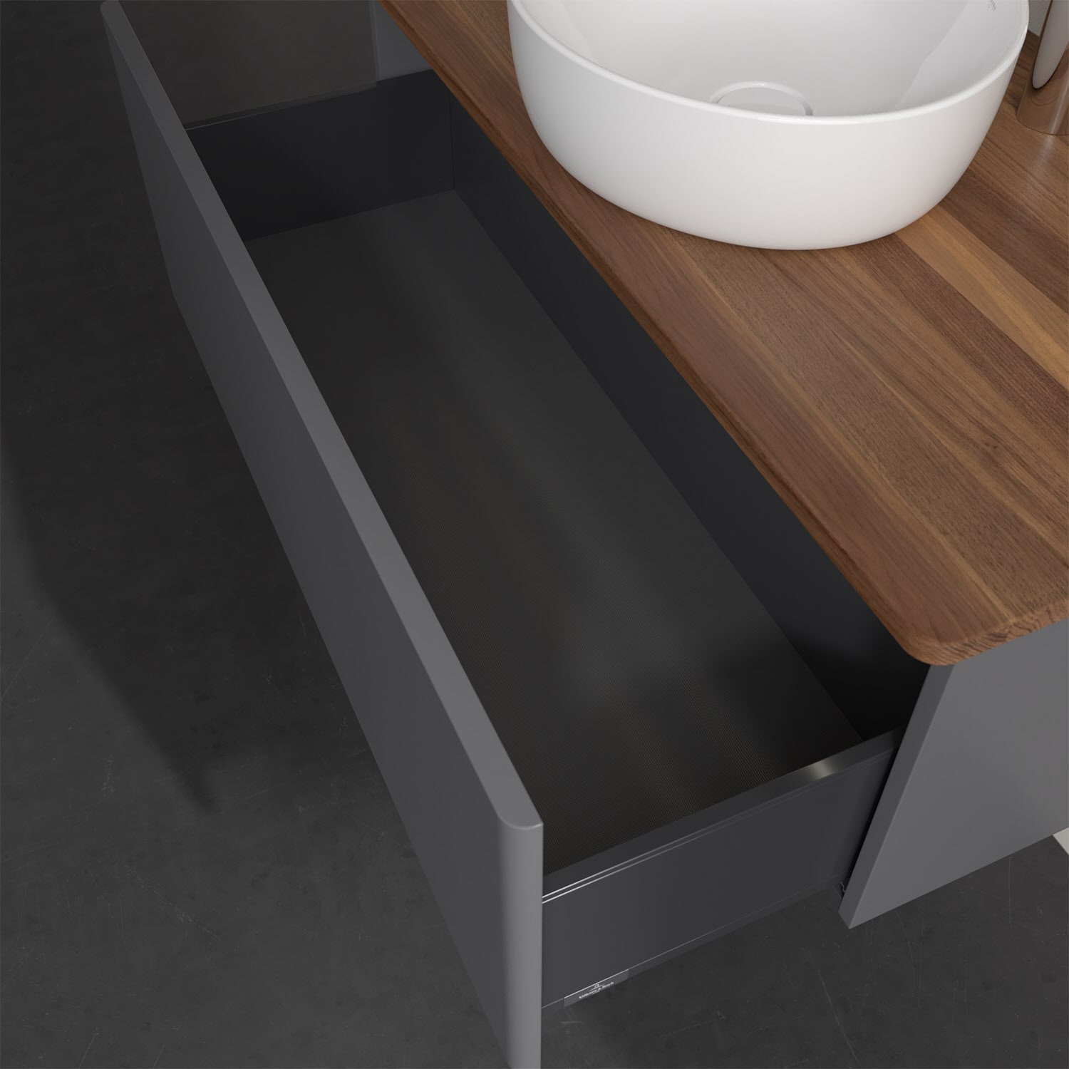 - kein Umfallen oder Verrutschen von Pflegeprodukten in den Schubladen dank rutschhemmendem Boden