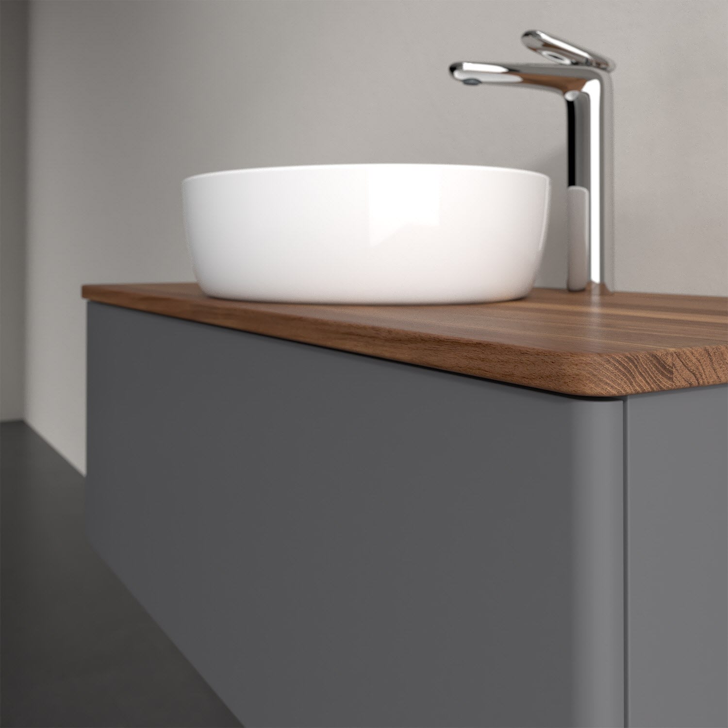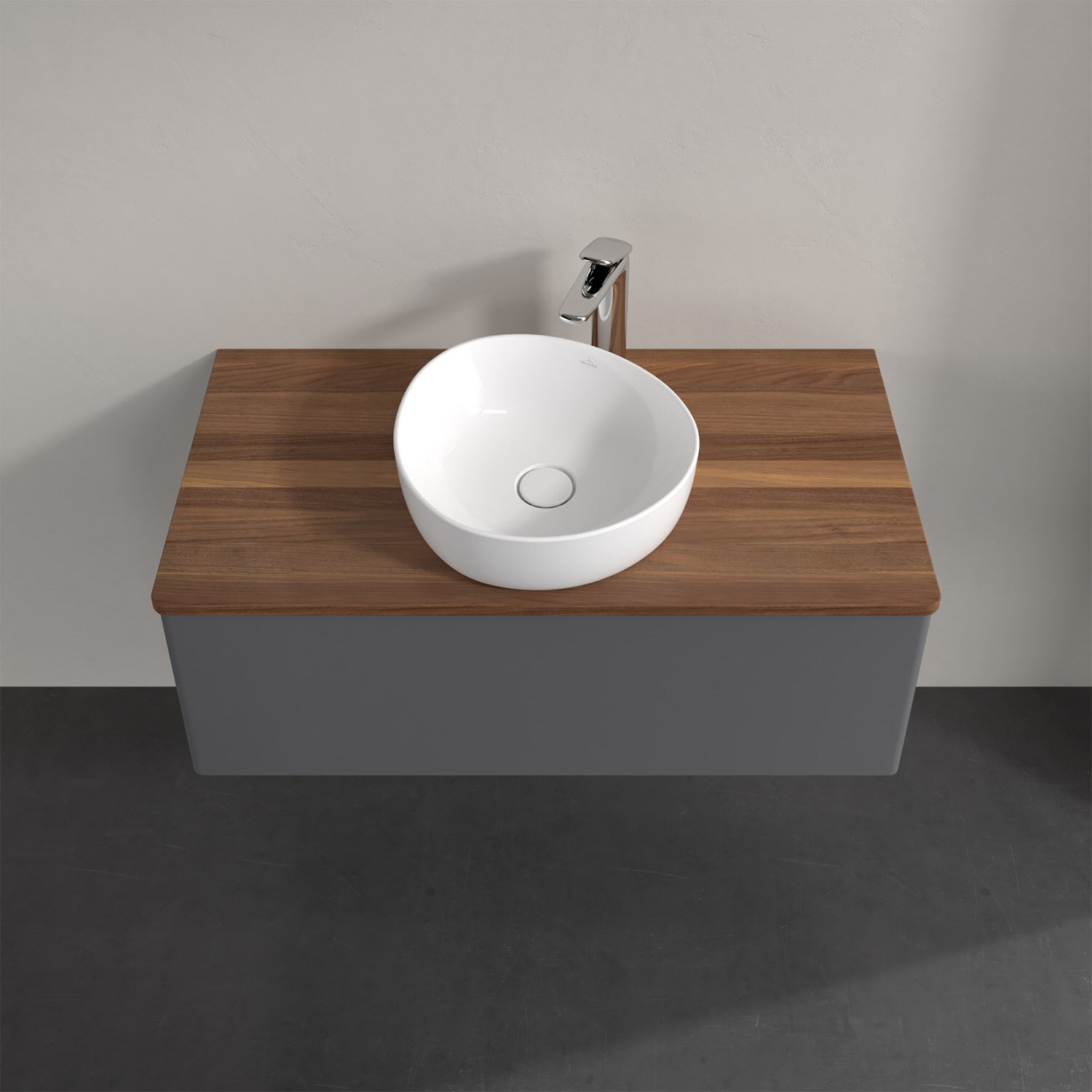 Für diesen Waschbeckenunterschrank stehen Ihnen Aufsatzwaschtische aus verschiedenen Serien zur Verfügung (siehe "Passliste" unter Downloads). Ein ausgewähltes Beispiel finden Sie im Zubehör. Den Waschtisch bitte separat mitbestellen.