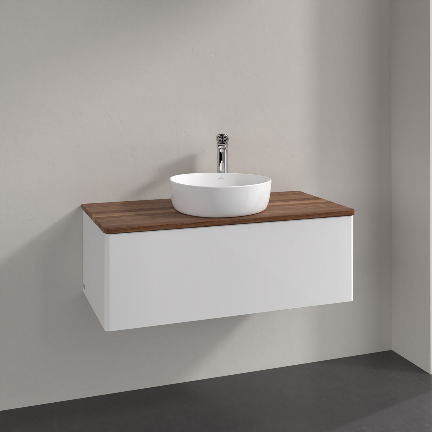 Villeroy & Boch Antao Waschbeckenunterschrank, 100 x 36 cm, 1 Auszug mit LED-Licht, Front ohne Struktur, mit Hahnloch
