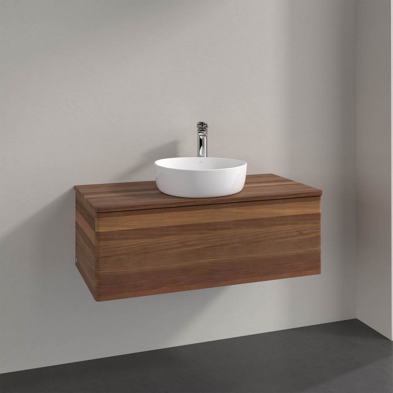 Für diesen Waschbeckenunterschrank stehen Ihnen Aufsatzwaschtische aus verschiedenen Serien zur Verfügung (siehe "Passliste" unter Downloads). Ein ausgewähltes Beispiel finden Sie im Zubehör. Den Waschtisch bitte separat mitbestellen.