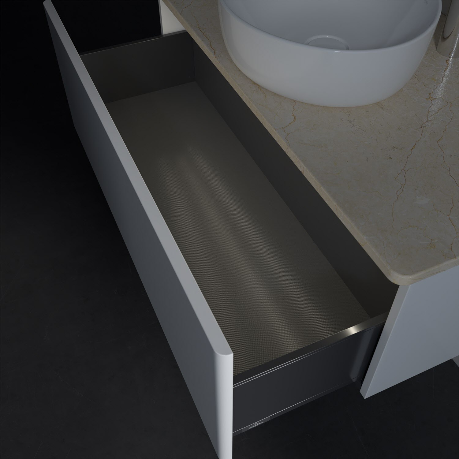 - kein Umfallen oder Verrutschen von Pflegeprodukten in den Schubladen dank rutschhemmendem Boden