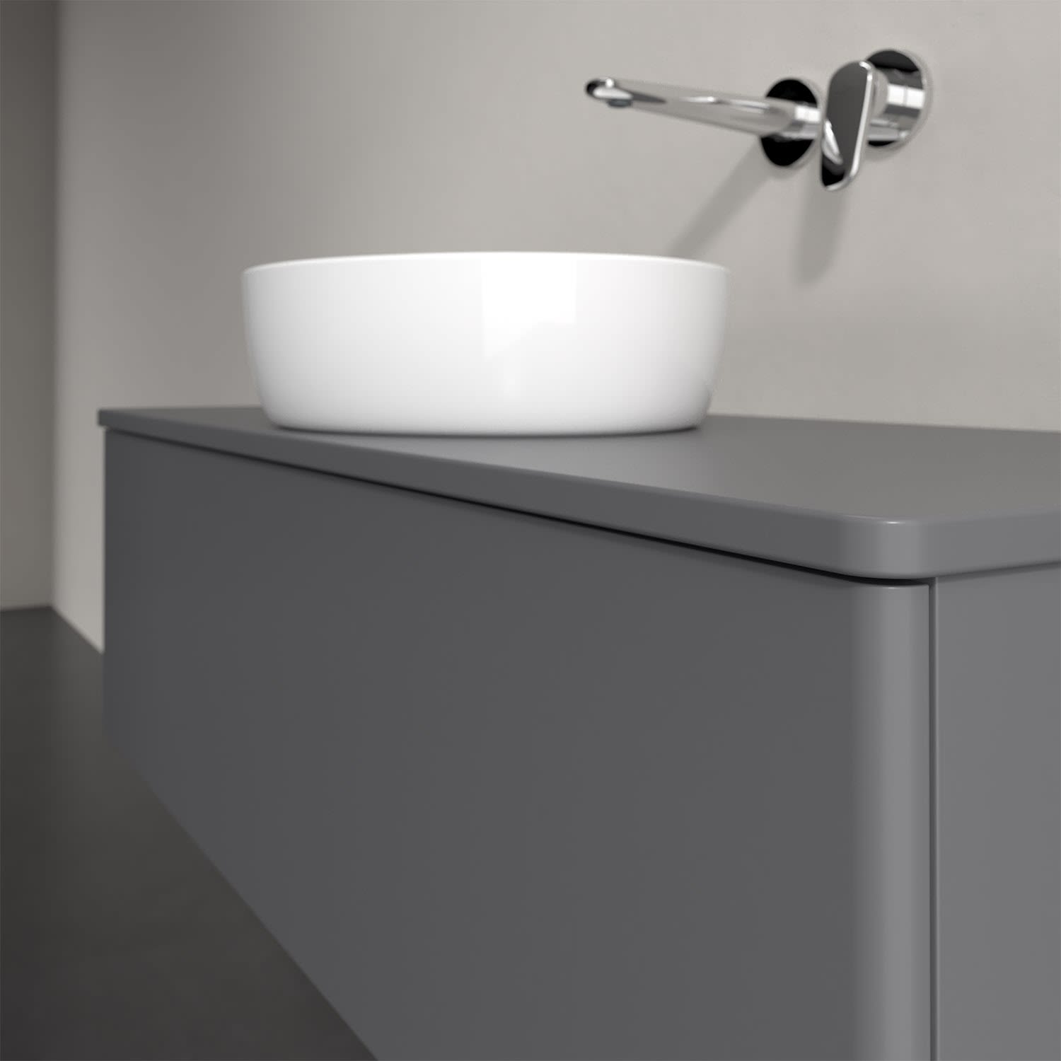 Für diesen Waschbeckenunterschrank stehen Ihnen Aufsatzwaschtische aus verschiedenen Serien zur Verfügung (siehe "Passliste" unter Downloads). Ein ausgewähltes Beispiel finden Sie im Zubehör. Den Waschtisch bitte separat mitbestellen.