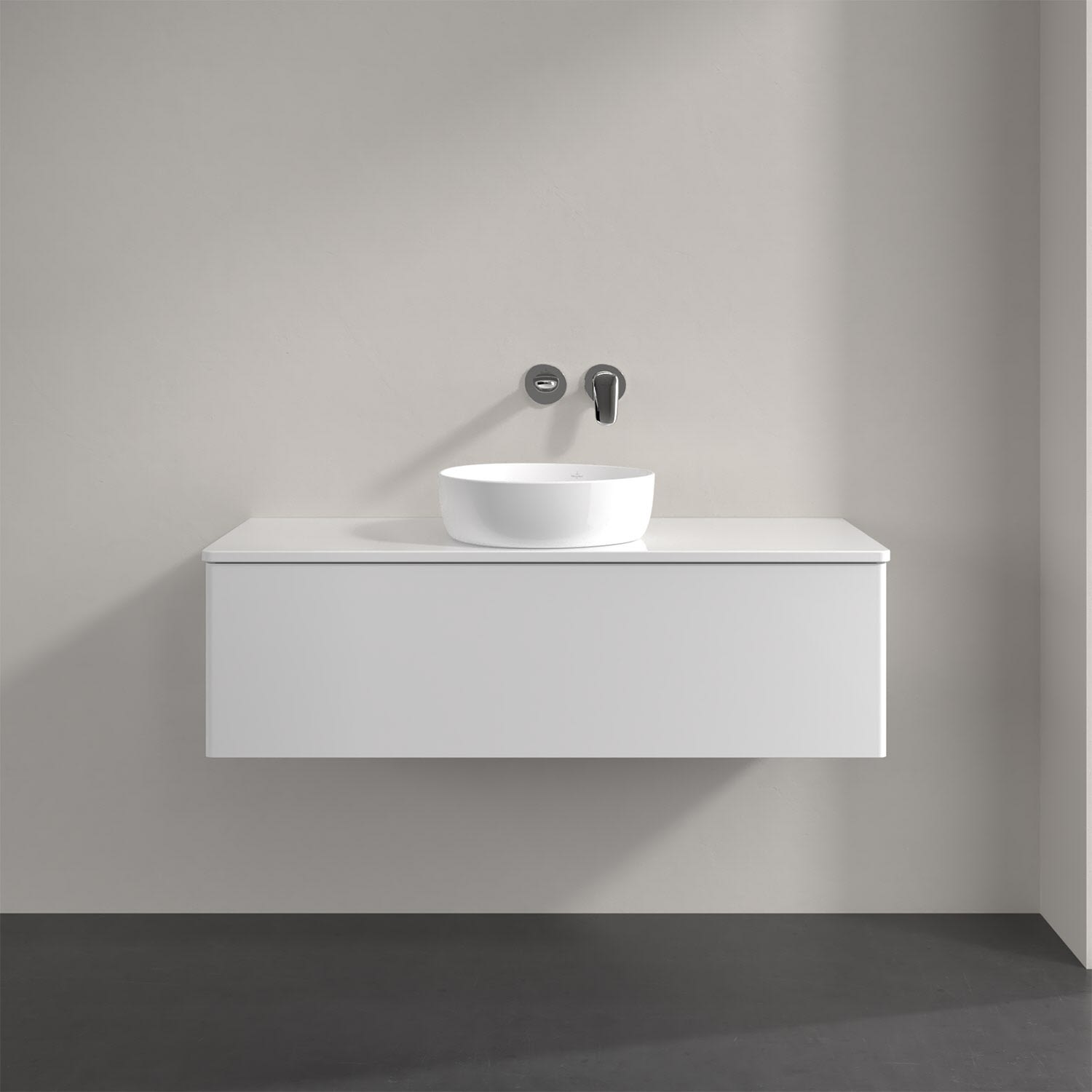 Villeroy & Boch Antao Waschbeckenunterschrank, 120 x 36 cm, 1 Auszug mit LED-Licht, Front ohne Struktur, mit Hahnloch, für Waschtisch mittig