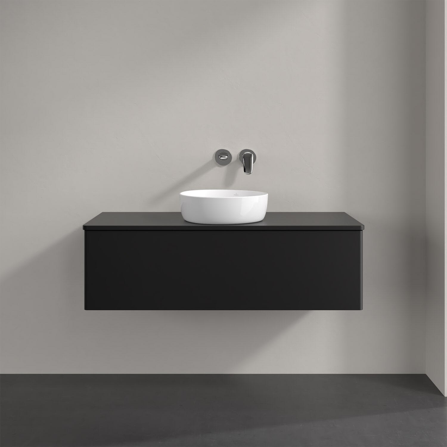 Villeroy & Boch Antao Waschbeckenunterschrank, 120 x 36 cm, 1 Auszug mit LED-Licht, Front ohne Struktur, mit Hahnloch, für Waschtisch mittig