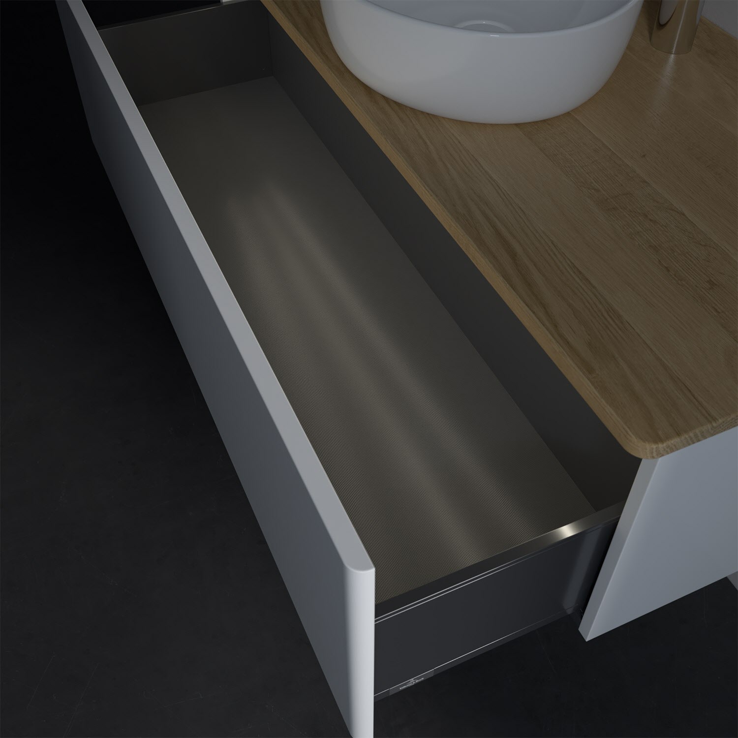 - kein Umfallen oder Verrutschen von Pflegeprodukten in den Schubladen dank rutschhemmendem Boden