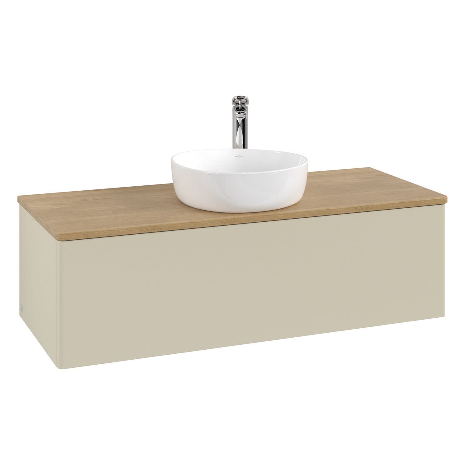 Villeroy & Boch Antao Waschbeckenunterschrank, 120 x 36 cm, 1 Auszug mit LED-Licht, Front ohne Struktur, mit Hahnloch, für Waschtisch mittig