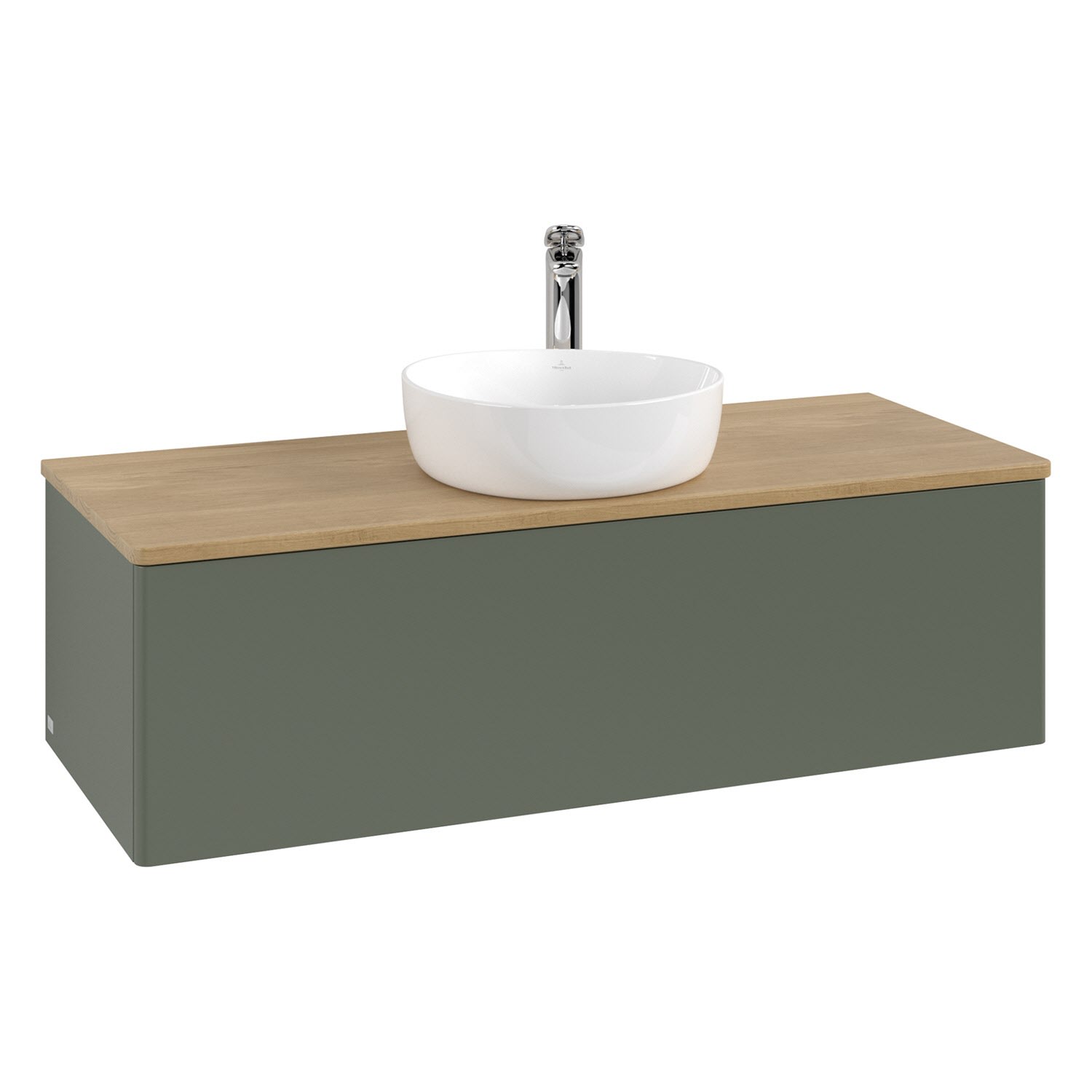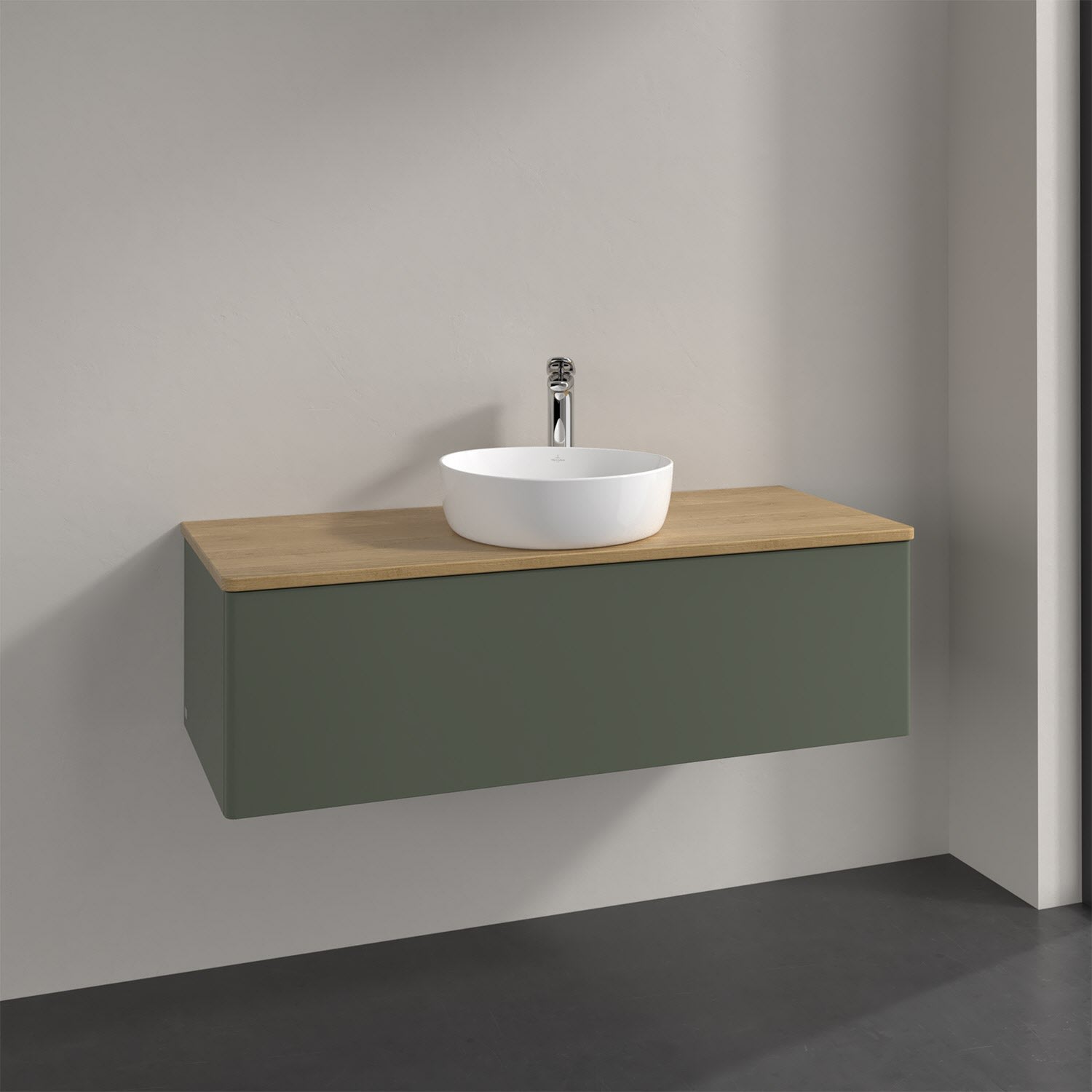 Villeroy & Boch Antao Waschbeckenunterschrank, 120 x 36 cm, 1 Auszug mit LED-Licht, Front ohne Struktur, mit Hahnloch, für Waschtisch mittig