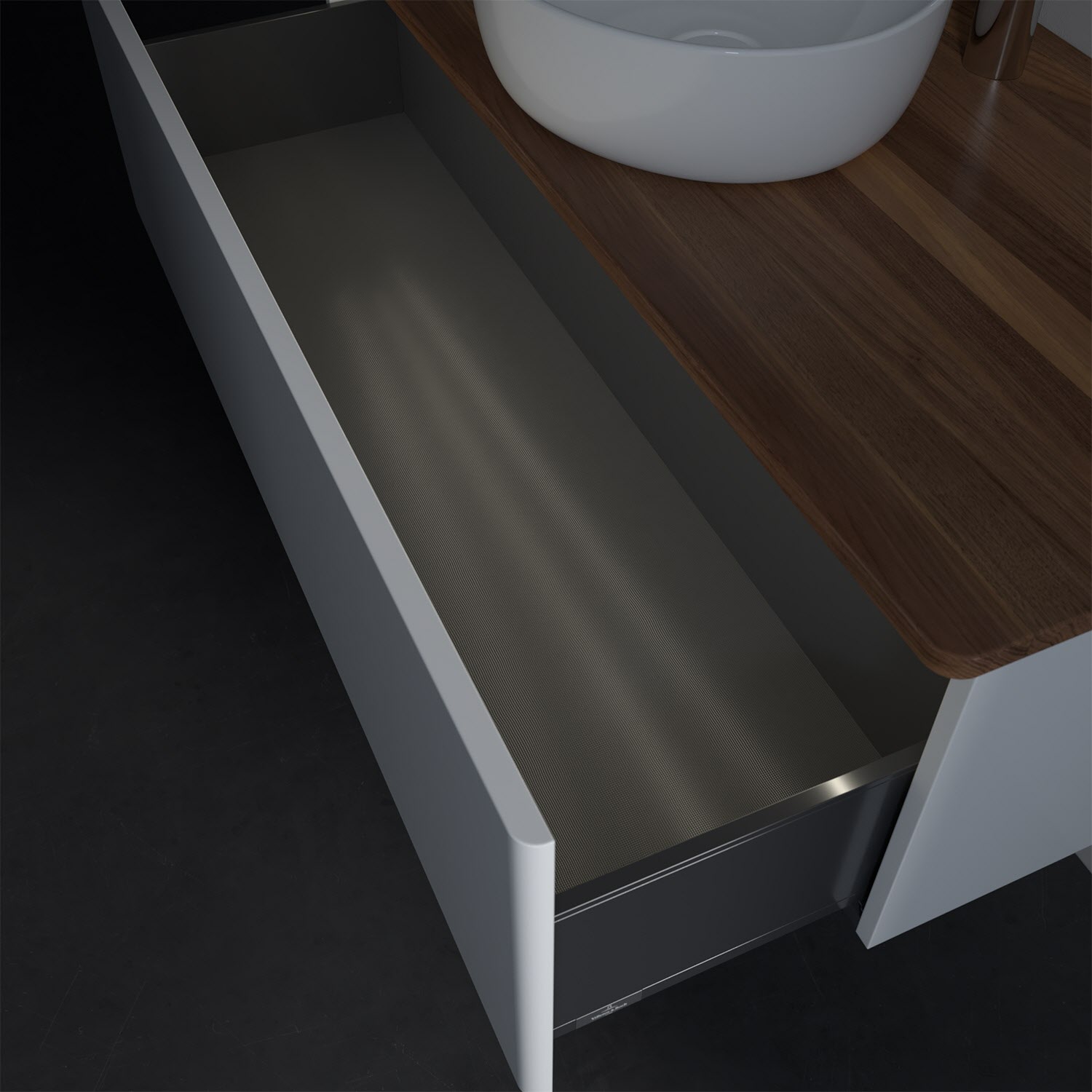 - kein Umfallen oder Verrutschen von Pflegeprodukten in den Schubladen dank rutschhemmendem Boden