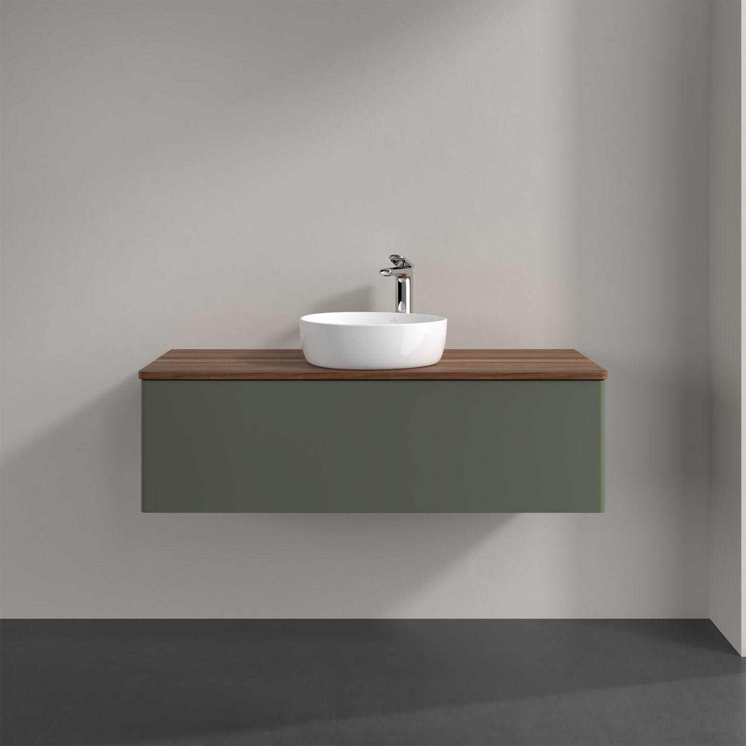 Für diesen Waschbeckenunterschrank stehen Ihnen Aufsatzwaschtische aus verschiedenen Serien zur Verfügung (siehe "Passliste" unter Downloads). Ein ausgewähltes Beispiel finden Sie im Zubehör. Den Waschtisch bitte separat mitbestellen.