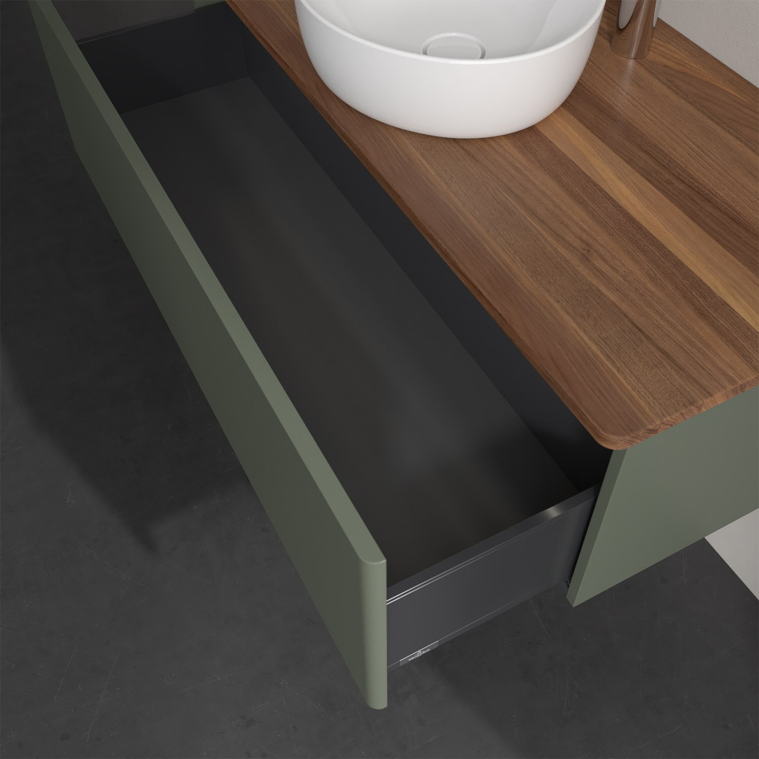 - kein Umfallen oder Verrutschen von Pflegeprodukten in den Schubladen dank rutschhemmendem Boden
