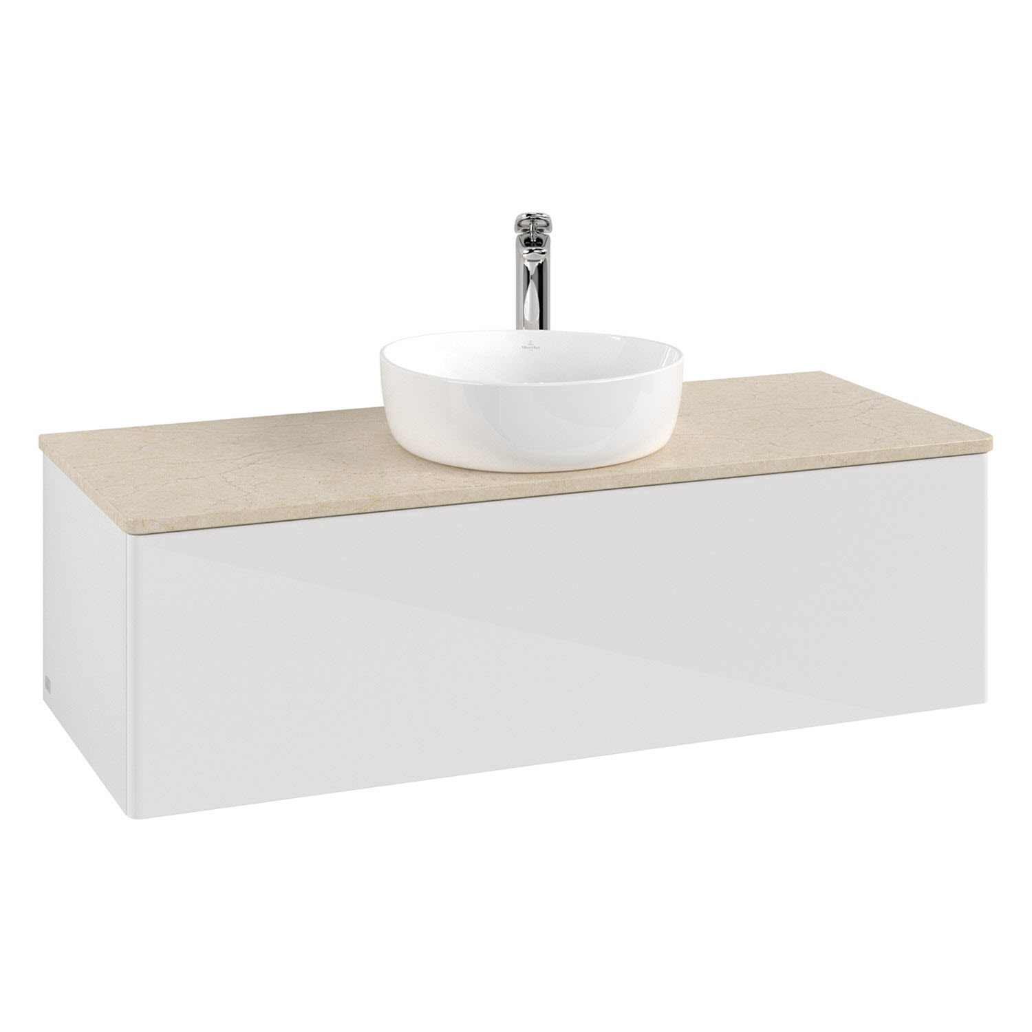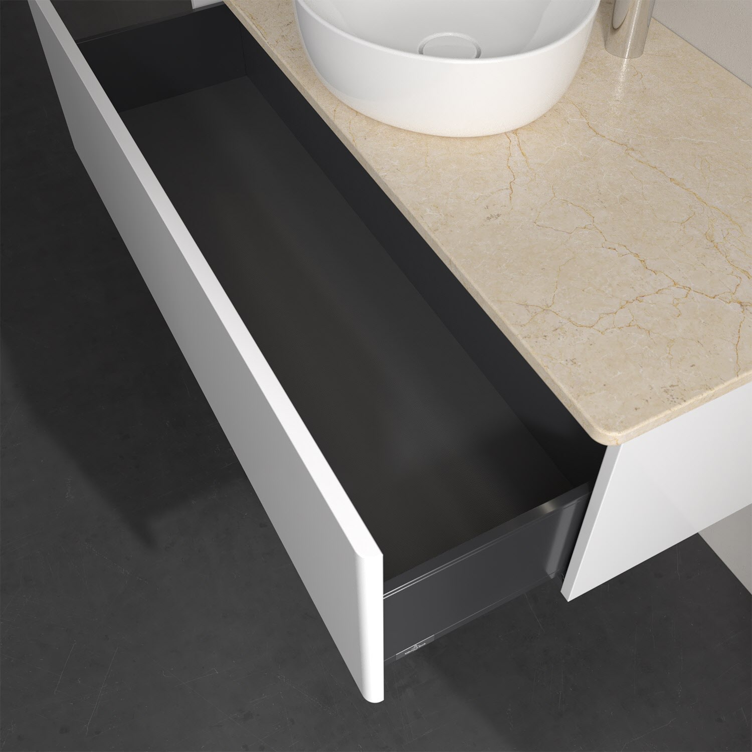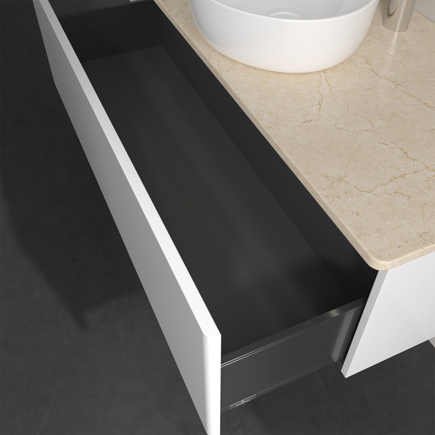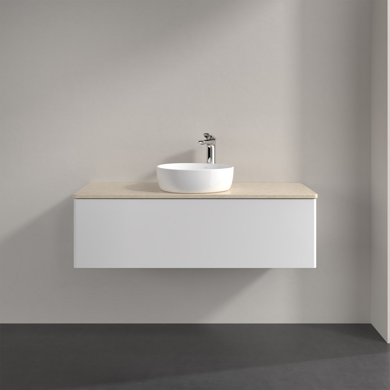 Villeroy & Boch Antao Waschbeckenunterschrank, 120 x 36 cm, 1 Auszug mit LED-Licht, Front ohne Struktur, mit Hahnloch, für Waschtisch mittig