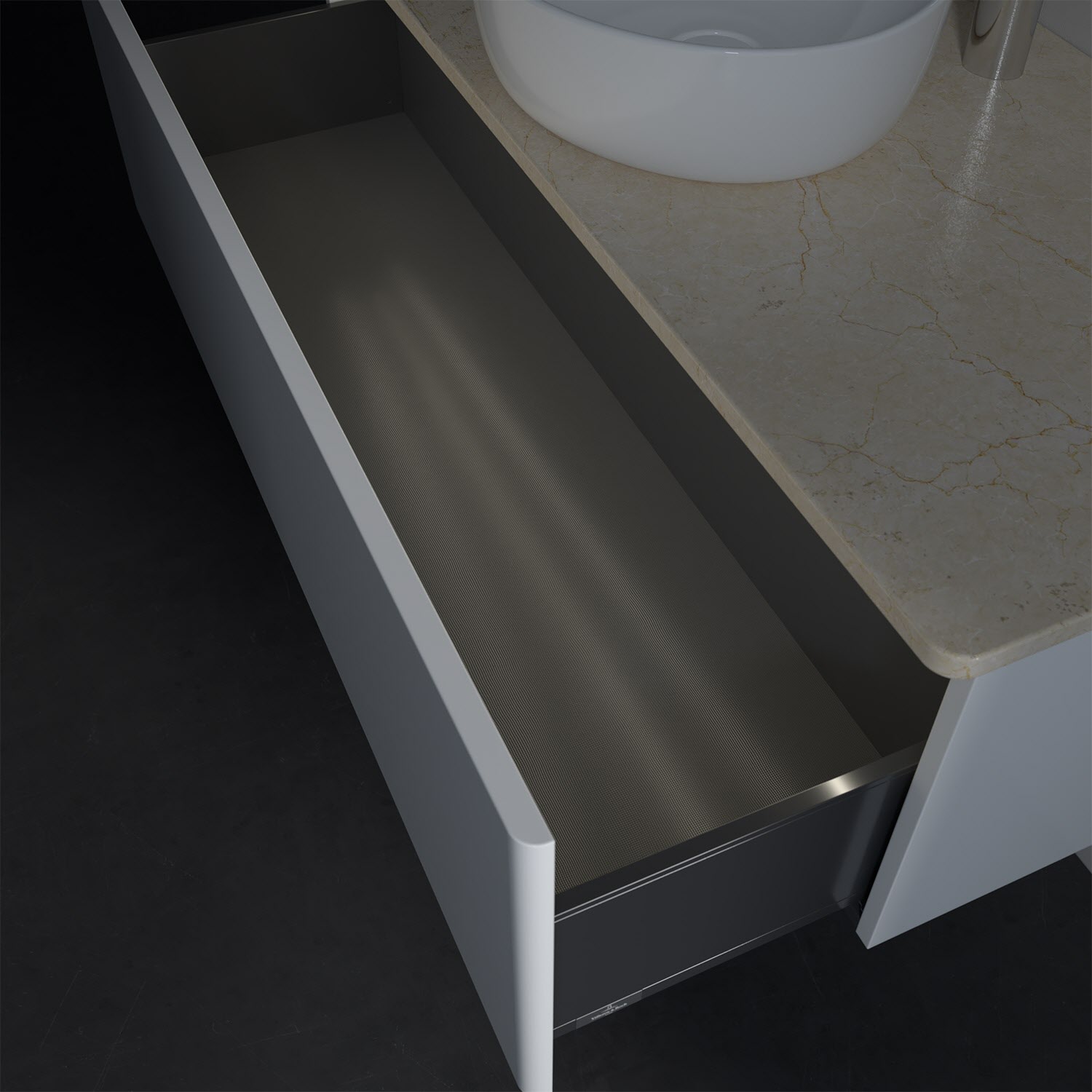 - kein Umfallen oder Verrutschen von Pflegeprodukten in den Schubladen dank rutschhemmendem Boden