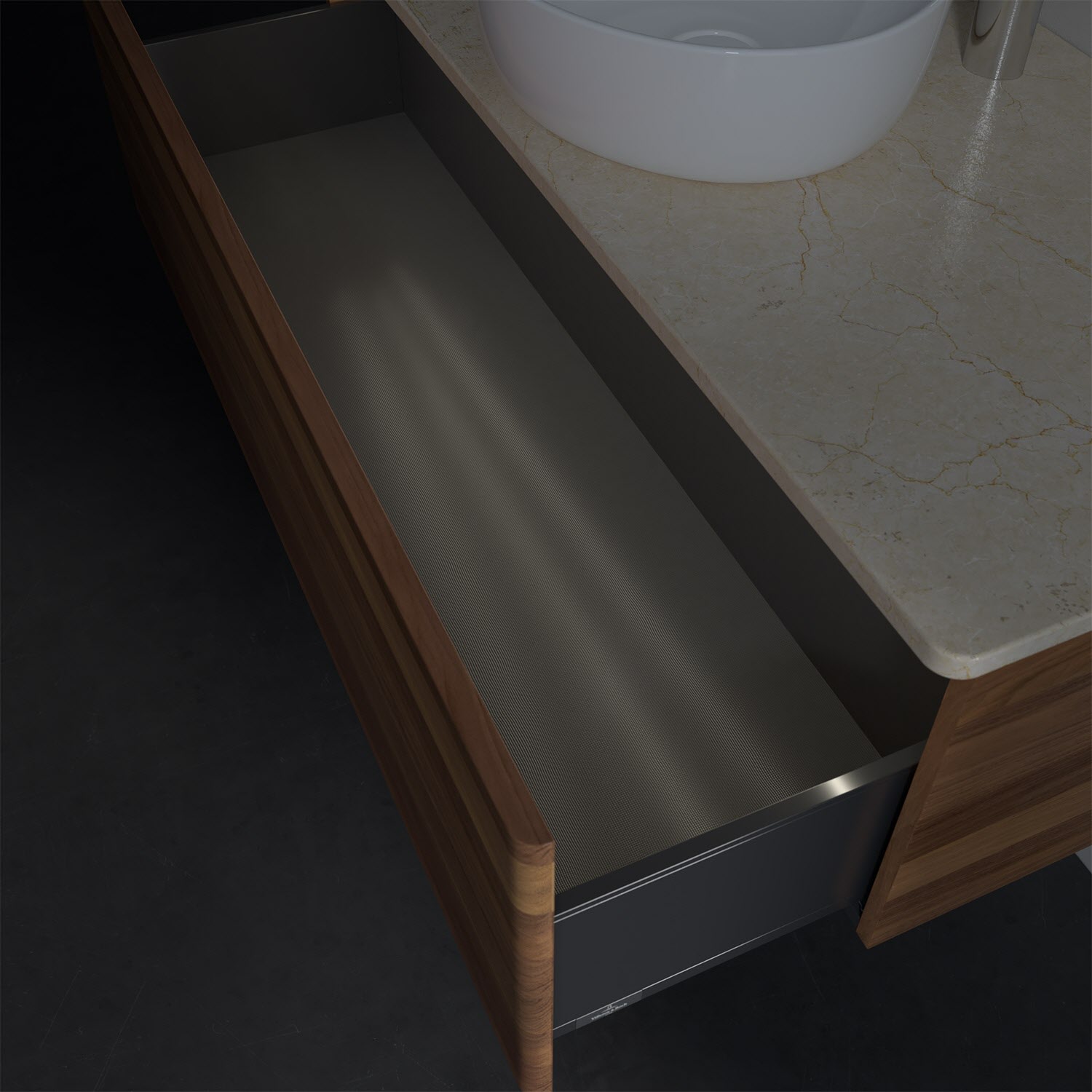 - kein Umfallen oder Verrutschen von Pflegeprodukten in den Schubladen dank rutschhemmendem Boden
