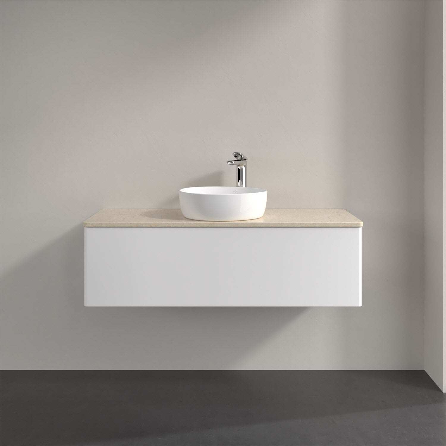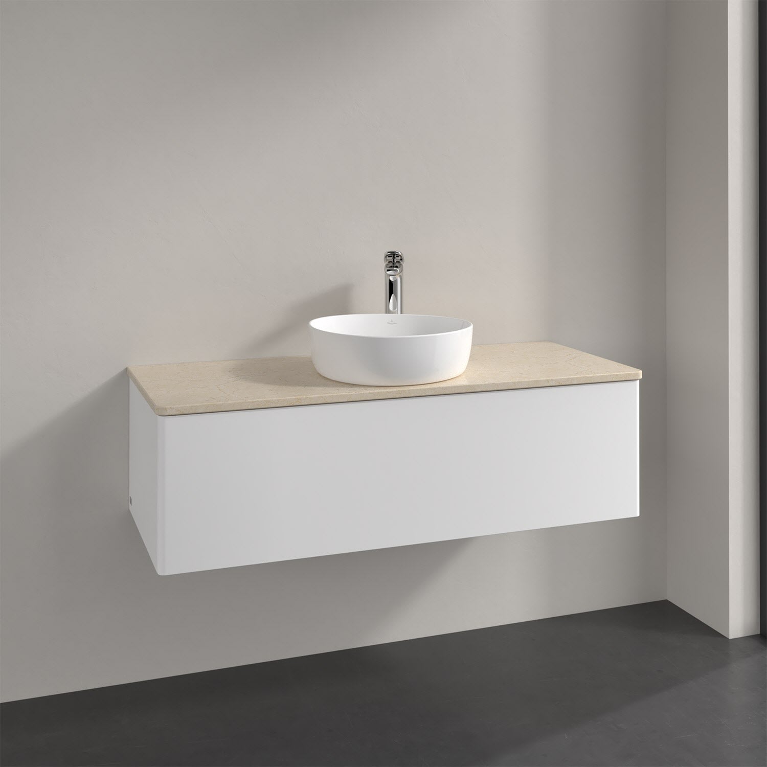 Villeroy & Boch Antao Waschbeckenunterschrank, 120 x 36 cm, 1 Auszug mit LED-Licht, Front ohne Struktur, mit Hahnloch, für Waschtisch mittig