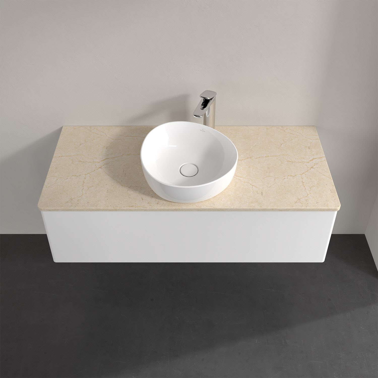 Für diesen Waschbeckenunterschrank stehen Ihnen Aufsatzwaschtische aus verschiedenen Serien zur Verfügung (siehe "Passliste" unter Downloads). Ein ausgewähltes Beispiel finden Sie im Zubehör. Den Waschtisch bitte separat mitbestellen.