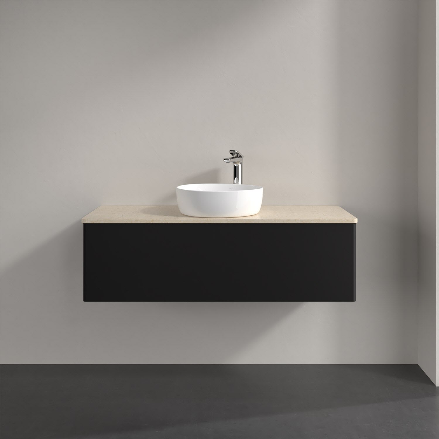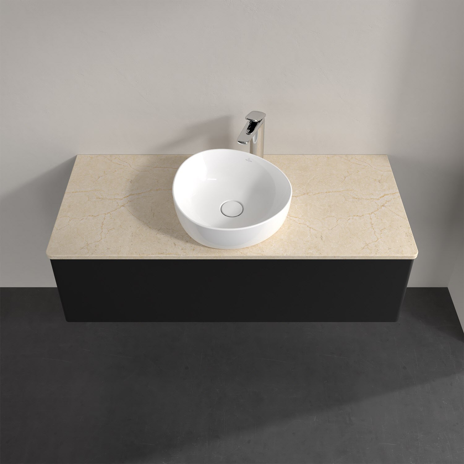 Für diesen Waschbeckenunterschrank stehen Ihnen Aufsatzwaschtische aus verschiedenen Serien zur Verfügung (siehe "Passliste" unter Downloads). Ein ausgewähltes Beispiel finden Sie im Zubehör. Den Waschtisch bitte separat mitbestellen.