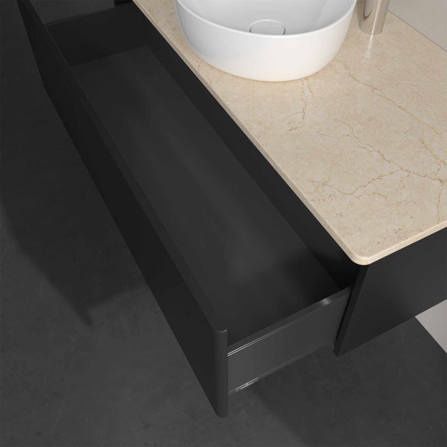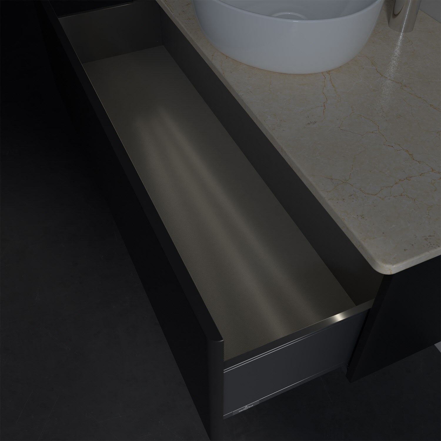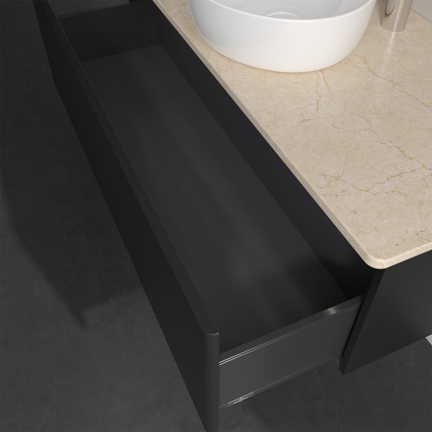 - kein Umfallen oder Verrutschen von Pflegeprodukten in den Schubladen dank rutschhemmendem Boden