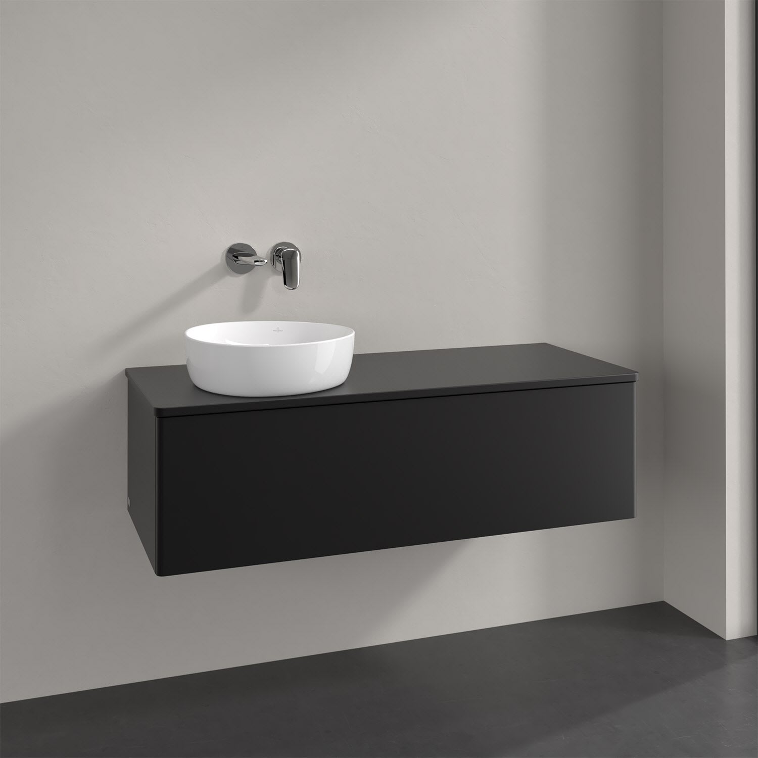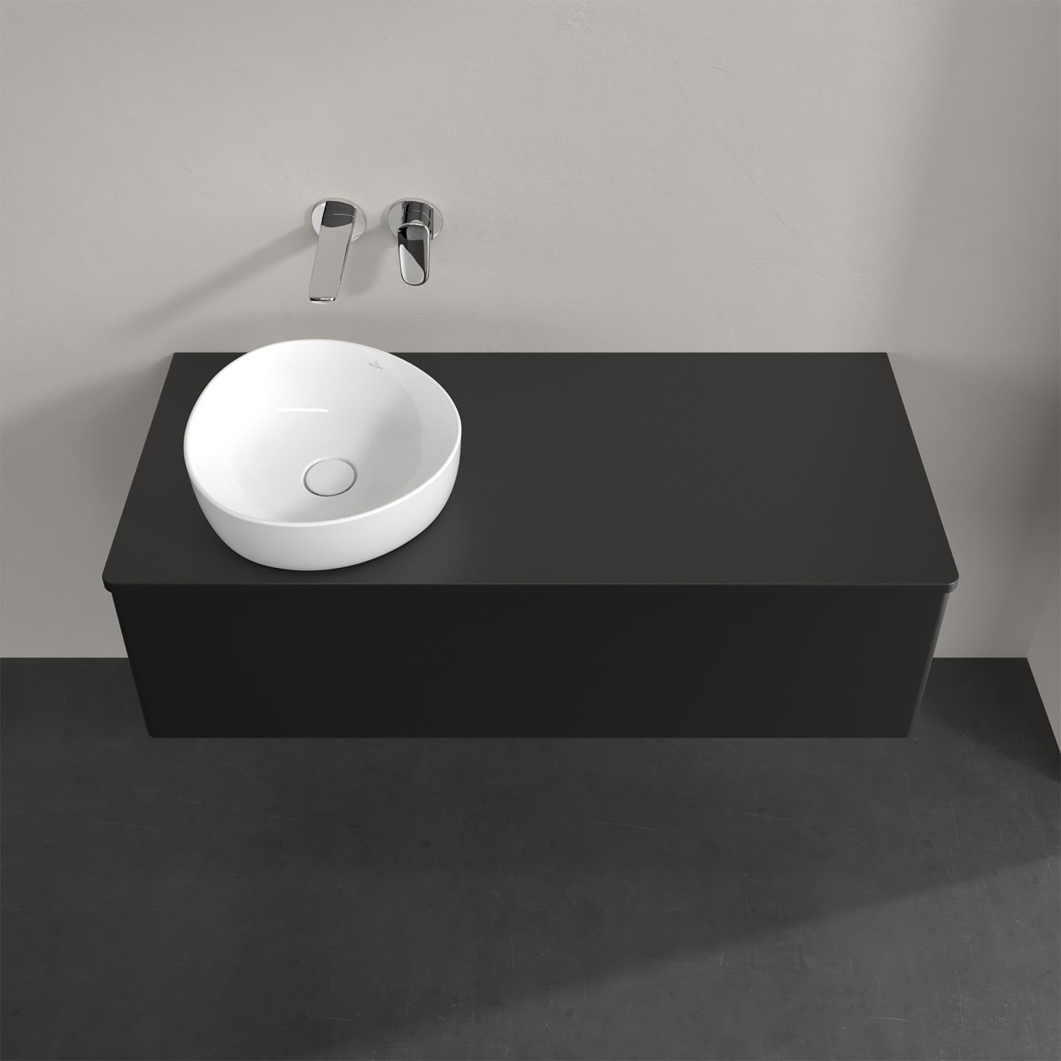 Für diesen Waschbeckenunterschrank stehen Ihnen Aufsatzwaschtische aus verschiedenen Serien zur Verfügung (siehe "Passliste" unter Downloads). Ein ausgewähltes Beispiel finden Sie im Zubehör. Den Waschtisch bitte separat mitbestellen.