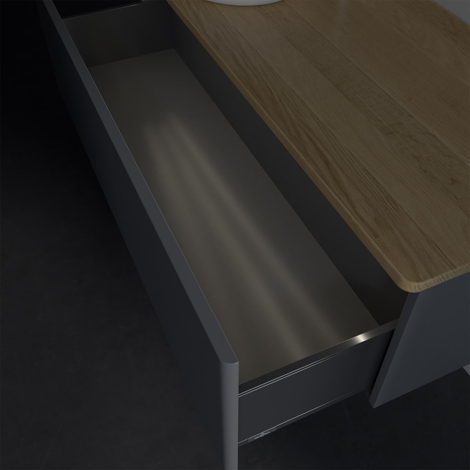 - kein Umfallen oder Verrutschen von Pflegeprodukten in den Schubladen dank rutschhemmendem Boden