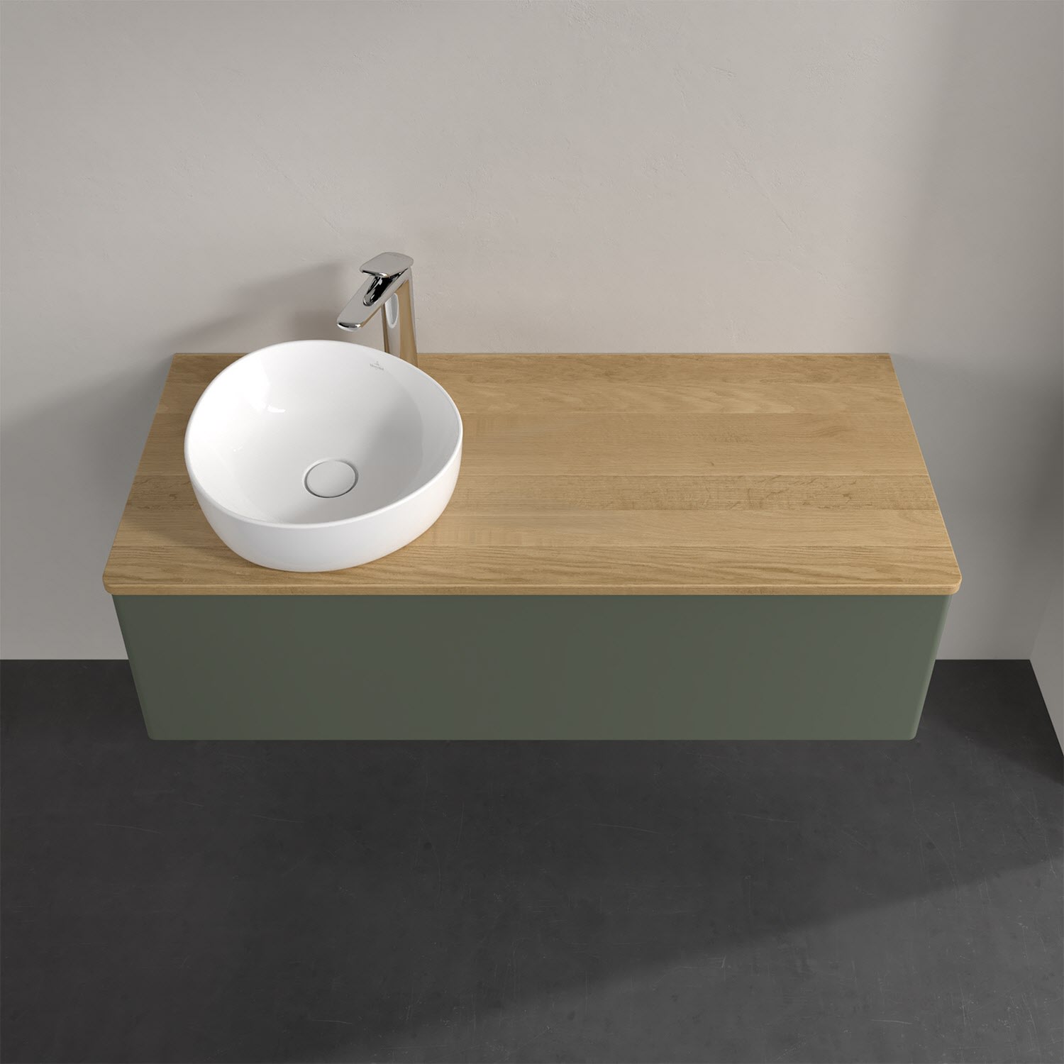 Für diesen Waschbeckenunterschrank stehen Ihnen Aufsatzwaschtische aus verschiedenen Serien zur Verfügung (siehe "Passliste" unter Downloads). Ein ausgewähltes Beispiel finden Sie im Zubehör. Den Waschtisch bitte separat mitbestellen.