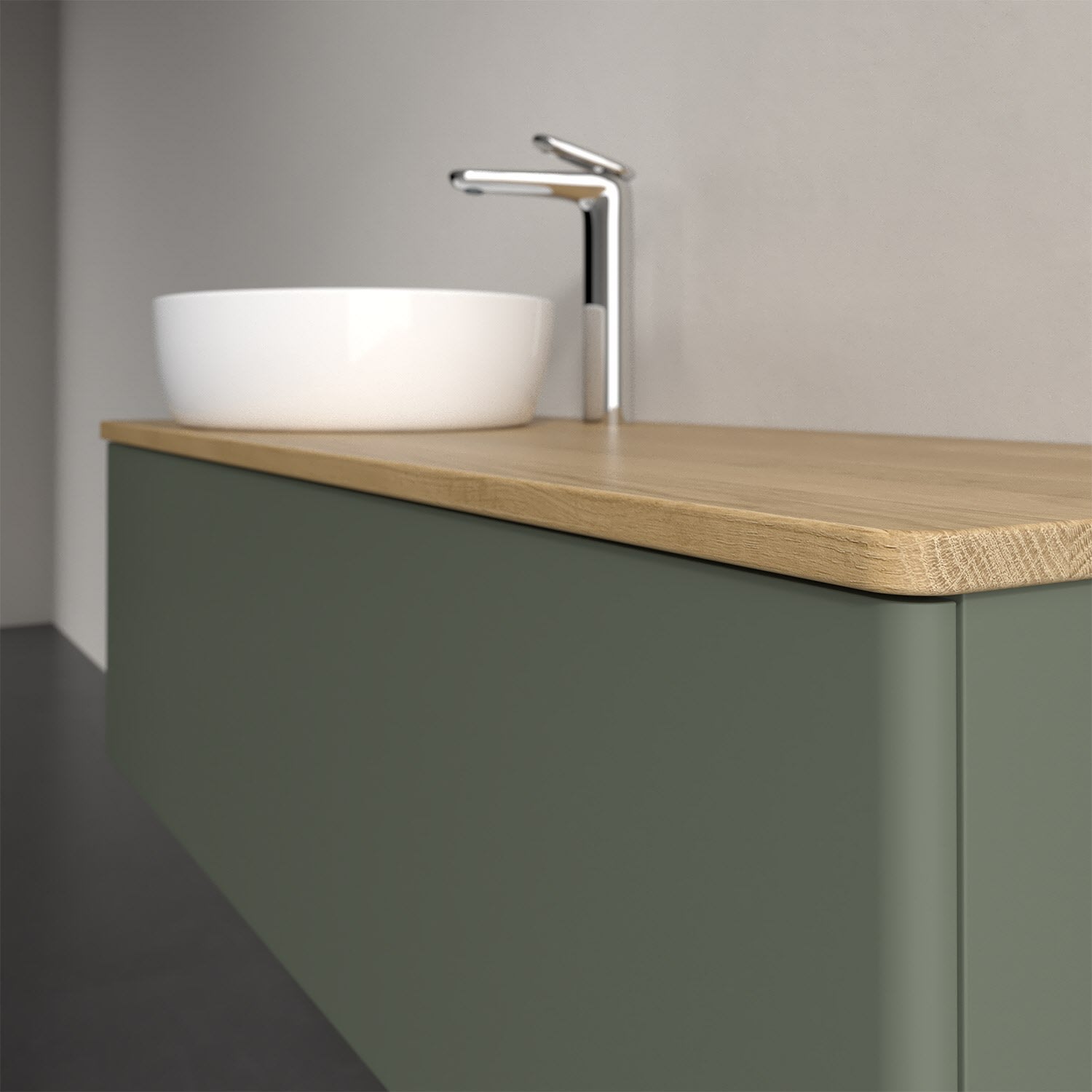 Der wandhängende Antao Waschtischunterschrank von Villeroy & Boch bietet nicht nur jede Menge Stauraum – er ist dank seines naturinspirierten Designs mit seinen abgerundeten Kanten auch noch besonders stilvoll und schafft eine gemütliche Atmosphäre im Badezimmer. Auf der Waschtischplatte bietet sich seitlich des Waschtischs viel Platz für Zahnbürstenbecher oder Seifenspender. Ein extra hoher Auszug bietet viel Platz, um alles Notwendige zu verstauen und Ordnung zu halten. Öffnen lässt er sich durch leichten Druck auf die grifflose Front. Dabei aktiviert sich übrigens die Auszugsbeleuchtung in angenehmem Warmweiß. Dank Vollauszug hat man immer alles im Blick und der Antirutschboden verhindert ein Umfallen oder Verrutschen der Gegenstände. Einfach clever! Für eine besonders leichte Pflege sorgt die mehrschichtig deckend lackierte Oberfläche. Bei der Ausführung in Massivholz wird dank des verarbeiteten Massivholzes jedes Möbel zu einem Unikat, das sich durch das lebendige Naturmaterial durch seine einzigartige Struktur und Maserung auszeichnet.