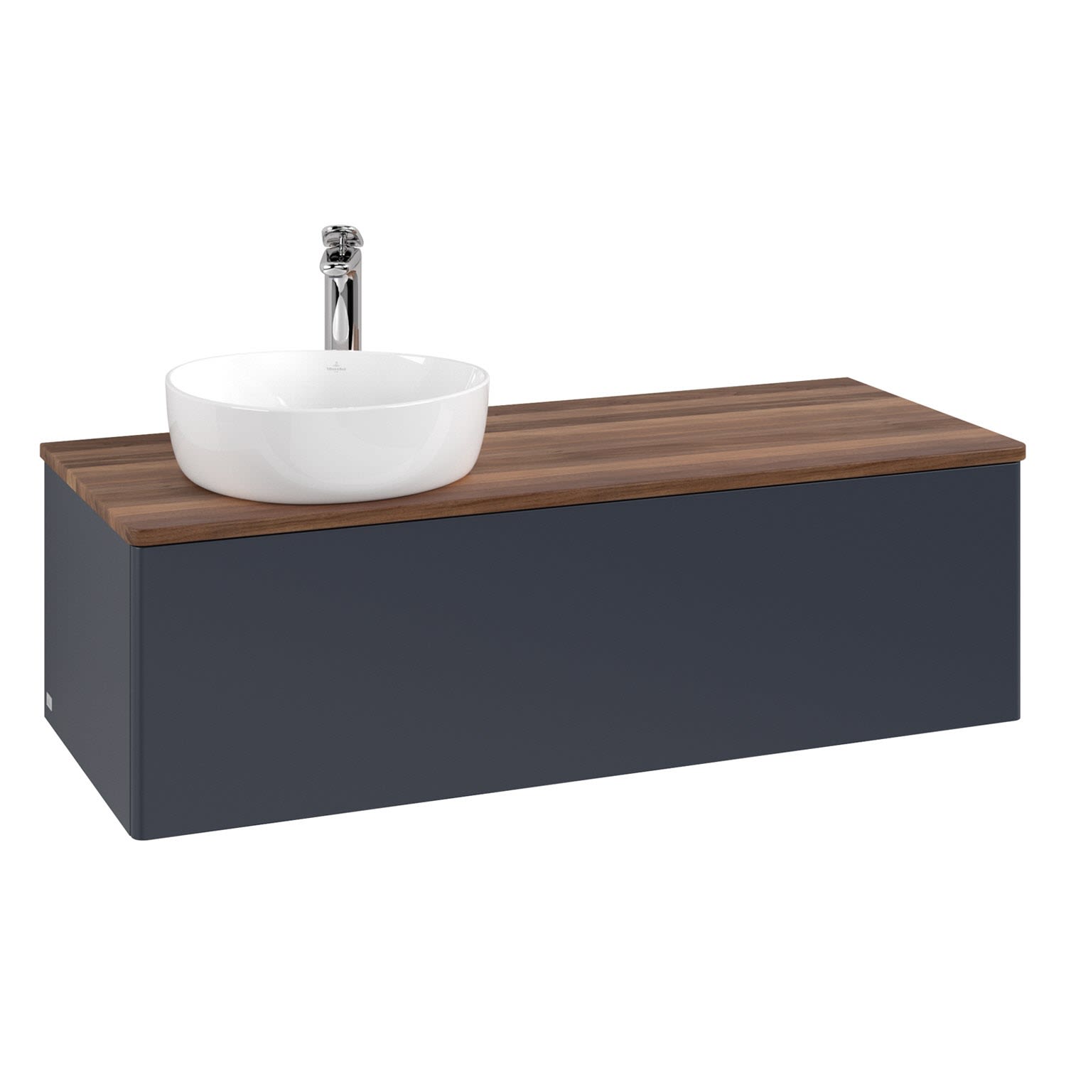 Villeroy & Boch Antao Waschbeckenunterschrank, 120 x 36 cm, 1 Auszug mit LED-Licht, Front ohne Struktur, mit Hahnloch, für Waschtisch links