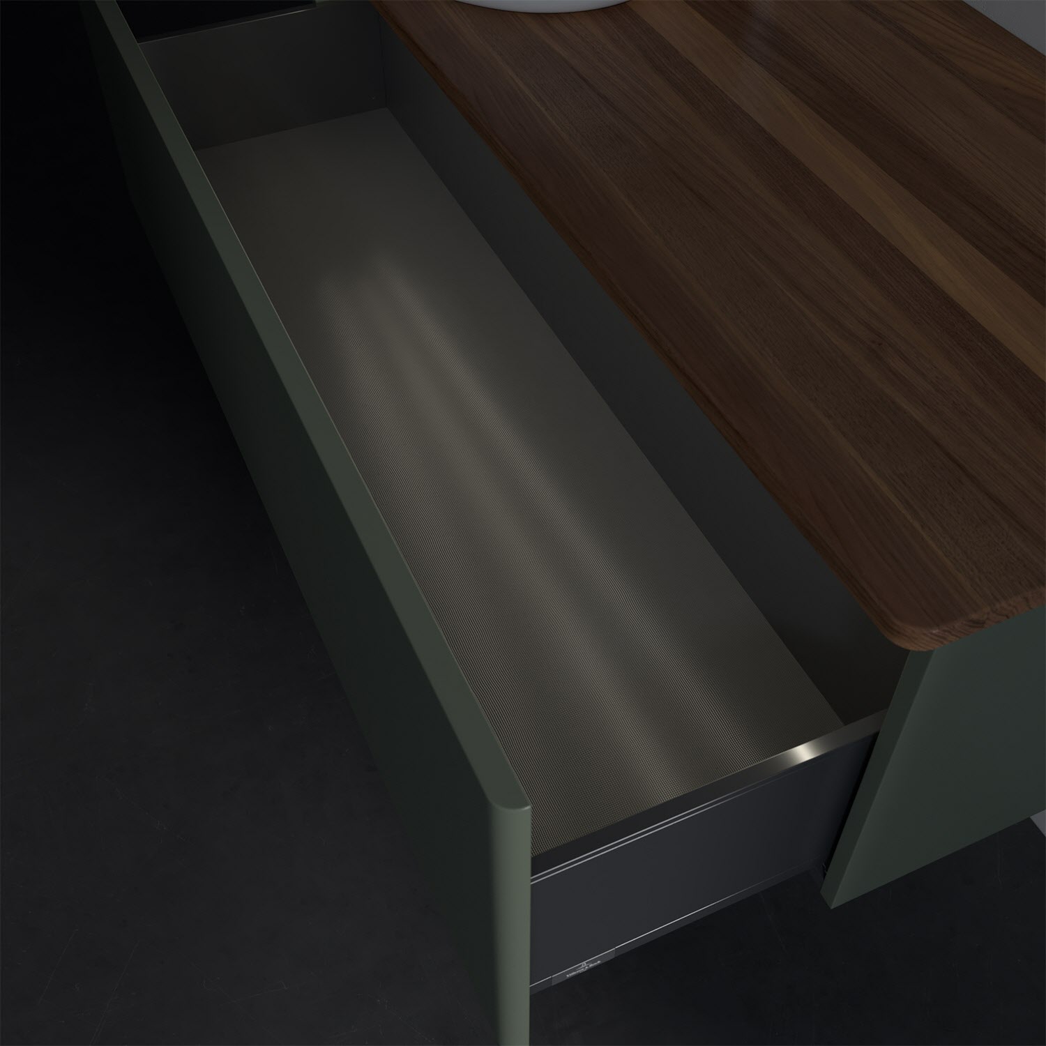 - kein Umfallen oder Verrutschen von Pflegeprodukten in den Schubladen dank rutschhemmendem Boden