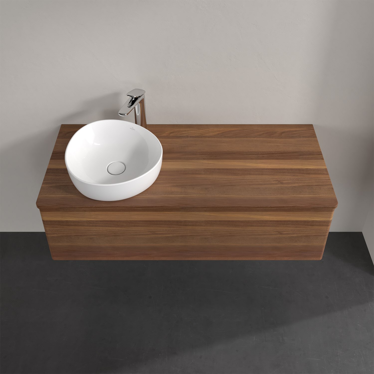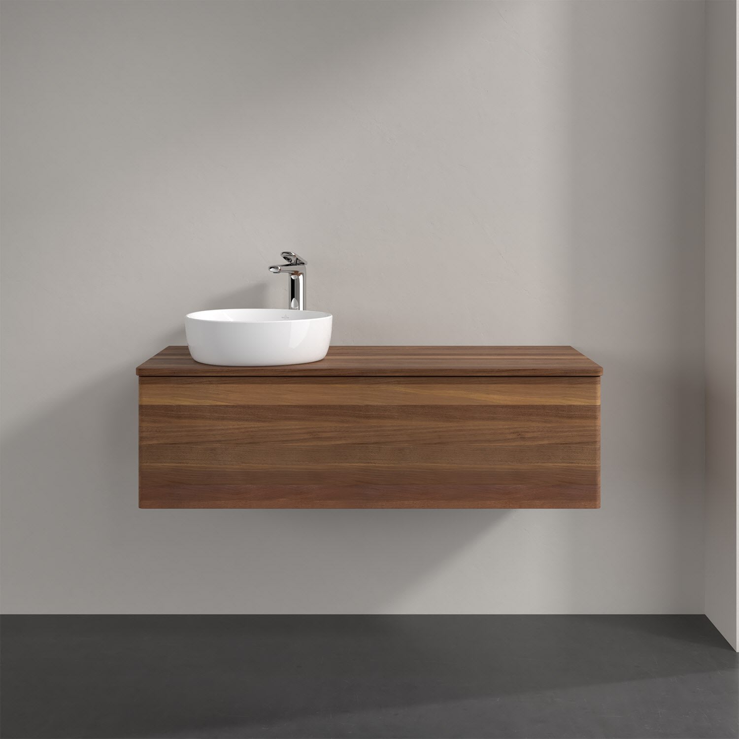 Villeroy & Boch Antao Waschbeckenunterschrank, 120 x 36 cm, 1 Auszug mit LED-Licht, Front ohne Struktur, mit Hahnloch, für Waschtisch links