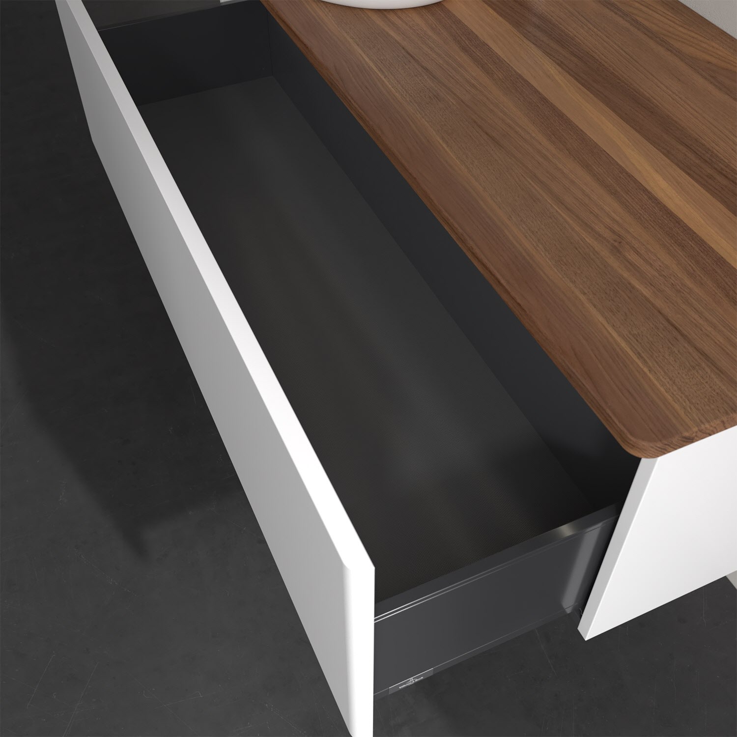 - kein Umfallen oder Verrutschen von Pflegeprodukten in den Schubladen dank rutschhemmendem Boden