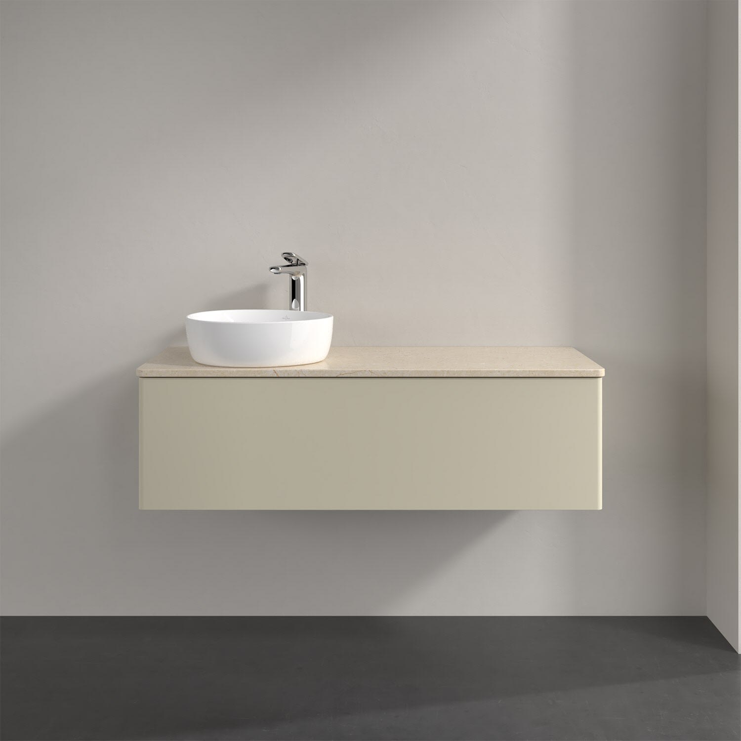 Villeroy & Boch Antao Waschbeckenunterschrank, 120 x 36 cm, 1 Auszug mit LED-Licht, Front ohne Struktur, mit Hahnloch, für Waschtisch links