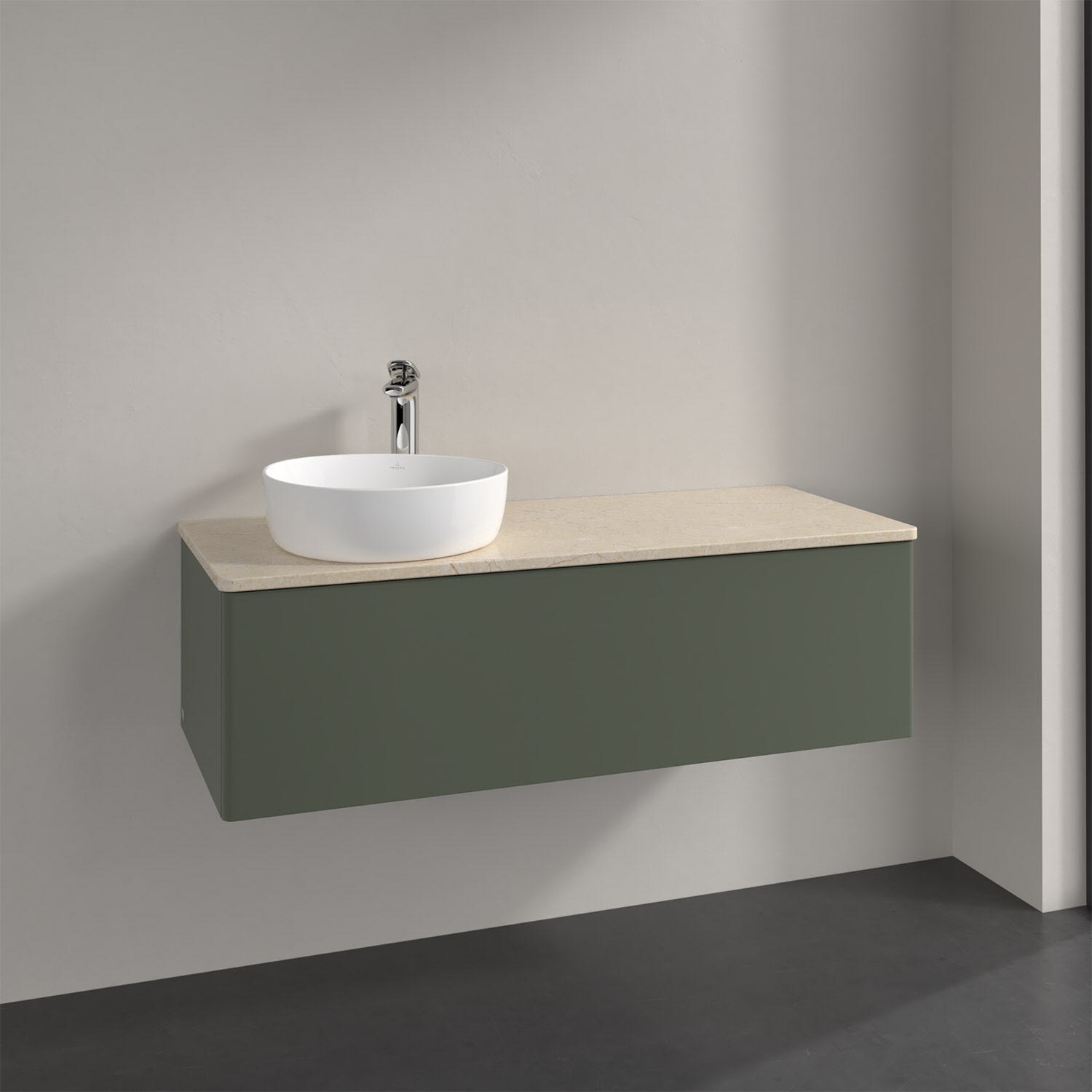 Villeroy & Boch Antao Waschbeckenunterschrank, 120 x 36 cm, 1 Auszug mit LED-Licht, Front ohne Struktur, mit Hahnloch, für Waschtisch links