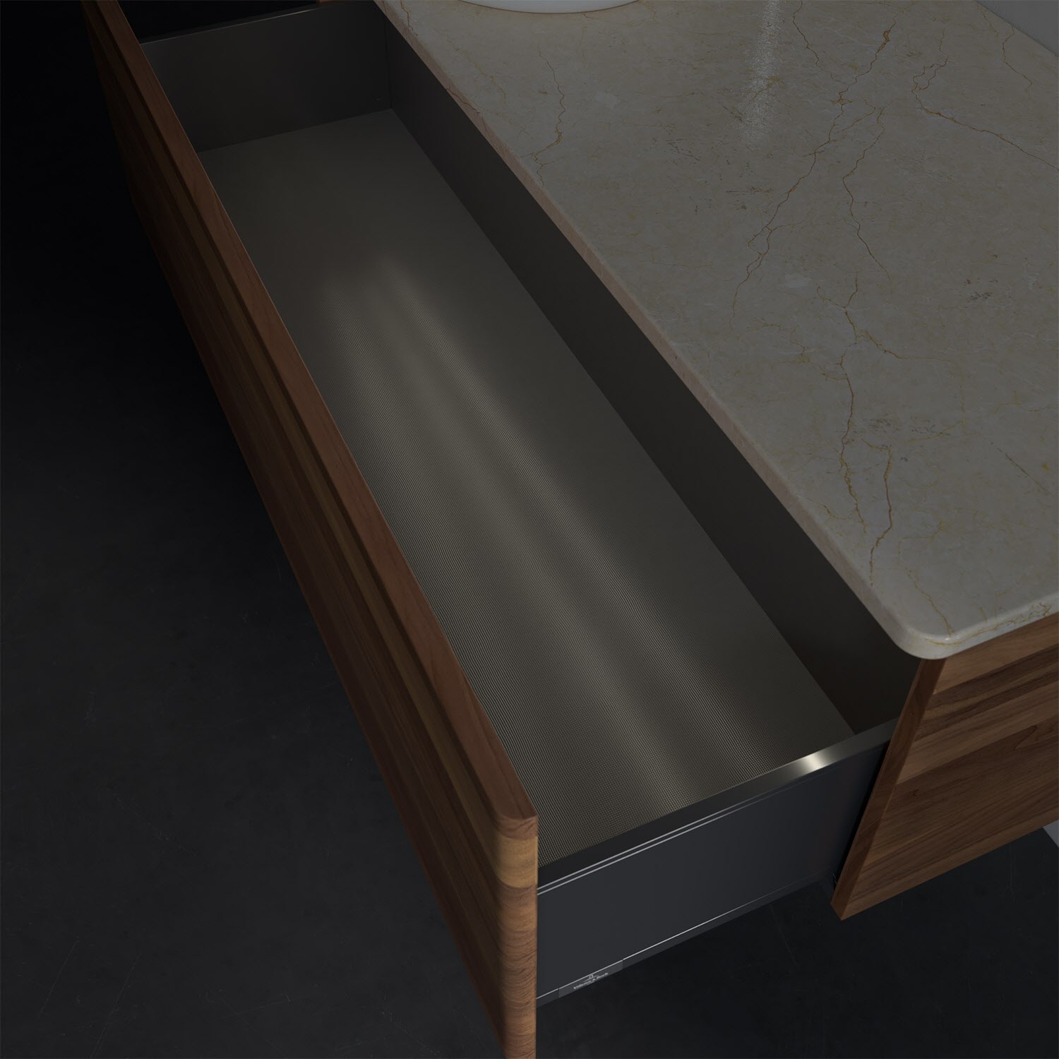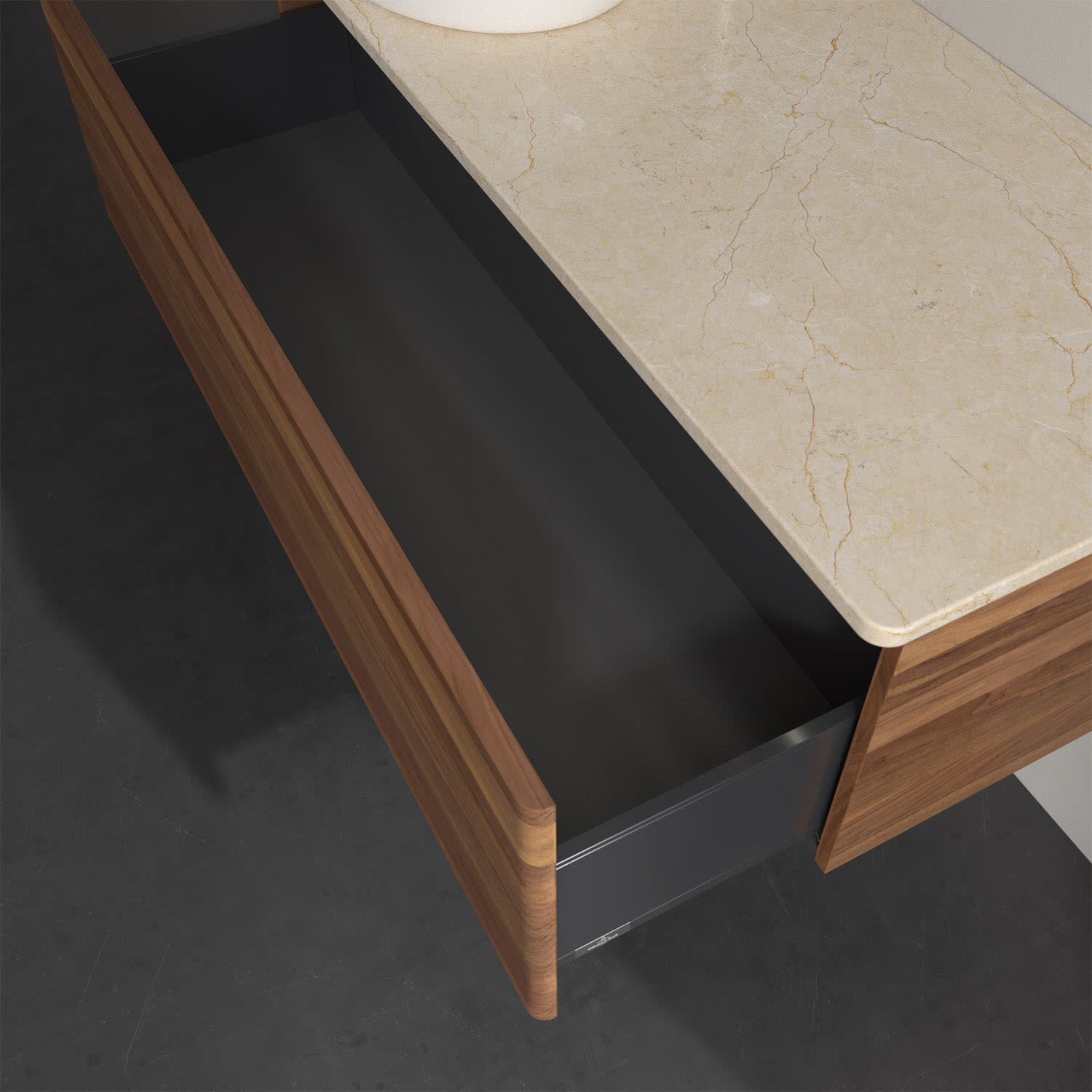 - kein Umfallen oder Verrutschen von Pflegeprodukten in den Schubladen dank rutschhemmendem Boden