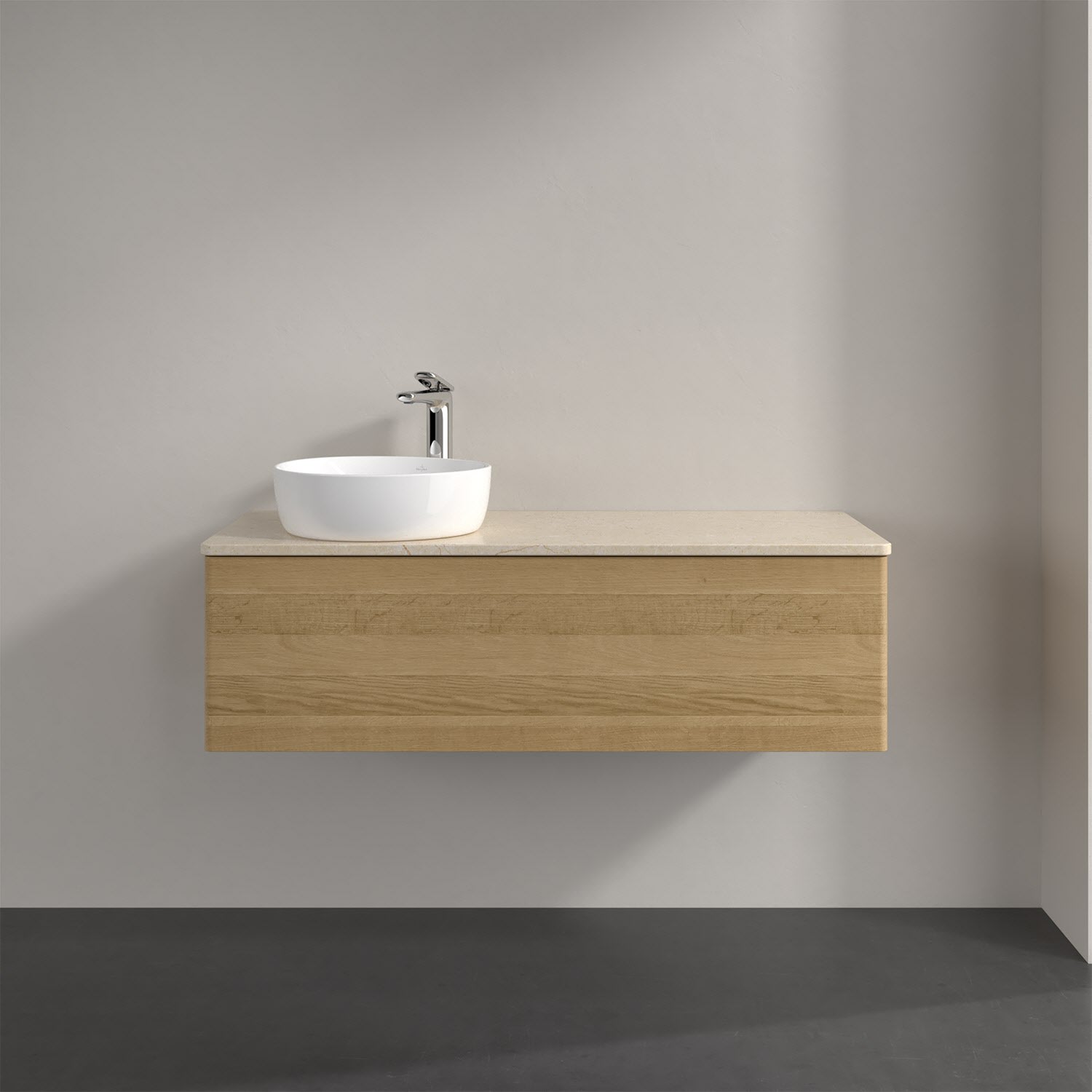 Villeroy & Boch Antao Waschbeckenunterschrank, 120 x 36 cm, 1 Auszug mit LED-Licht, Front ohne Struktur, mit Hahnloch, für Waschtisch links