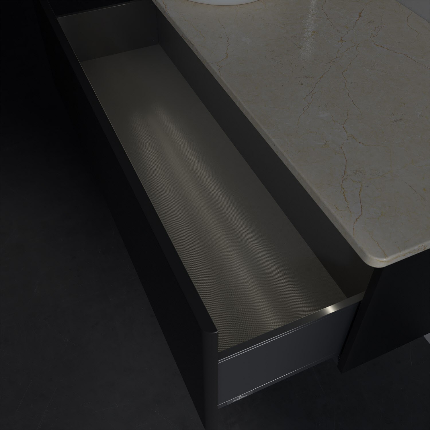 - kein Umfallen oder Verrutschen von Pflegeprodukten in den Schubladen dank rutschhemmendem Boden