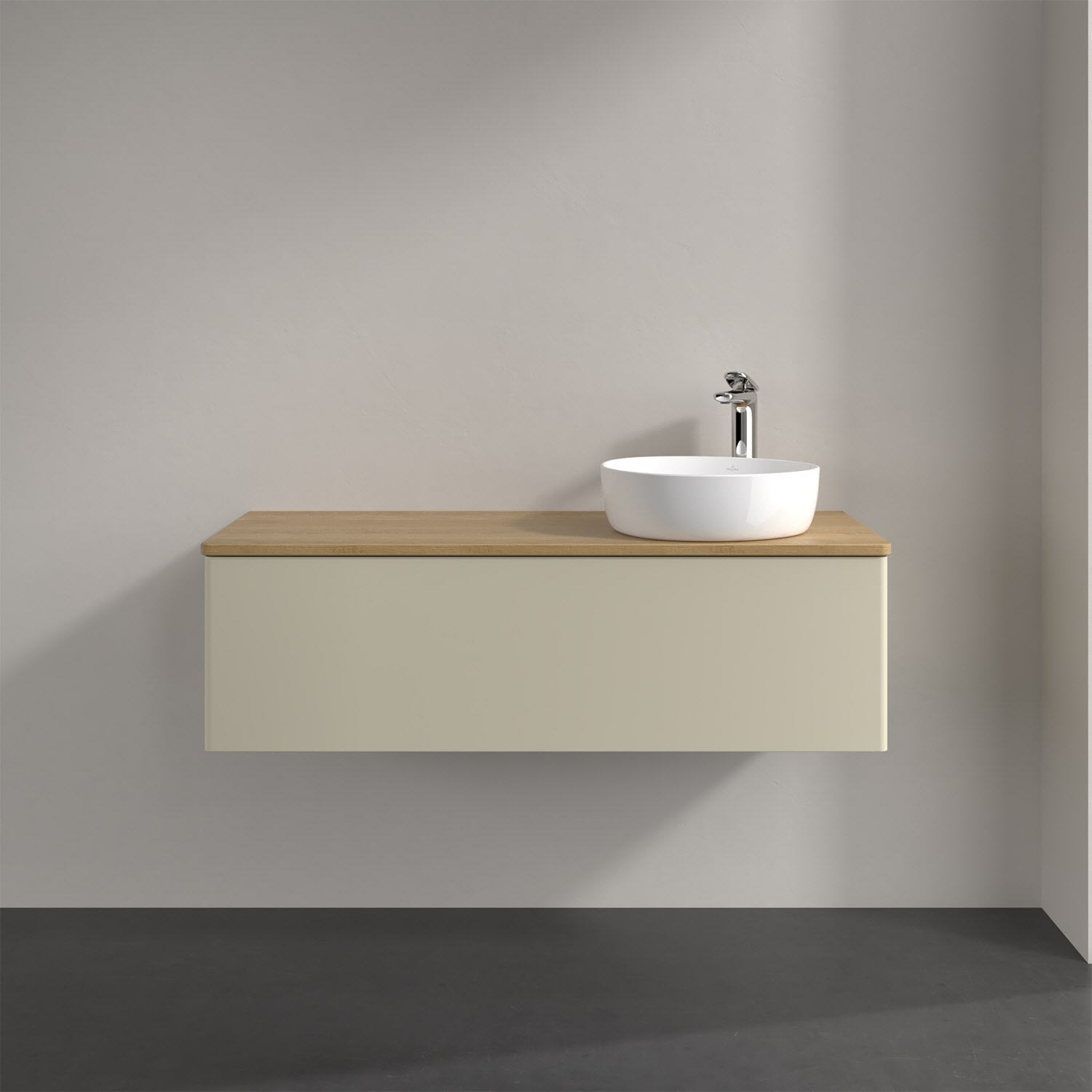 Für diesen Waschbeckenunterschrank stehen Ihnen Aufsatzwaschtische aus verschiedenen Serien zur Verfügung (siehe "Passliste" unter Downloads). Ein ausgewähltes Beispiel finden Sie im Zubehör. Den Waschtisch bitte separat mitbestellen.