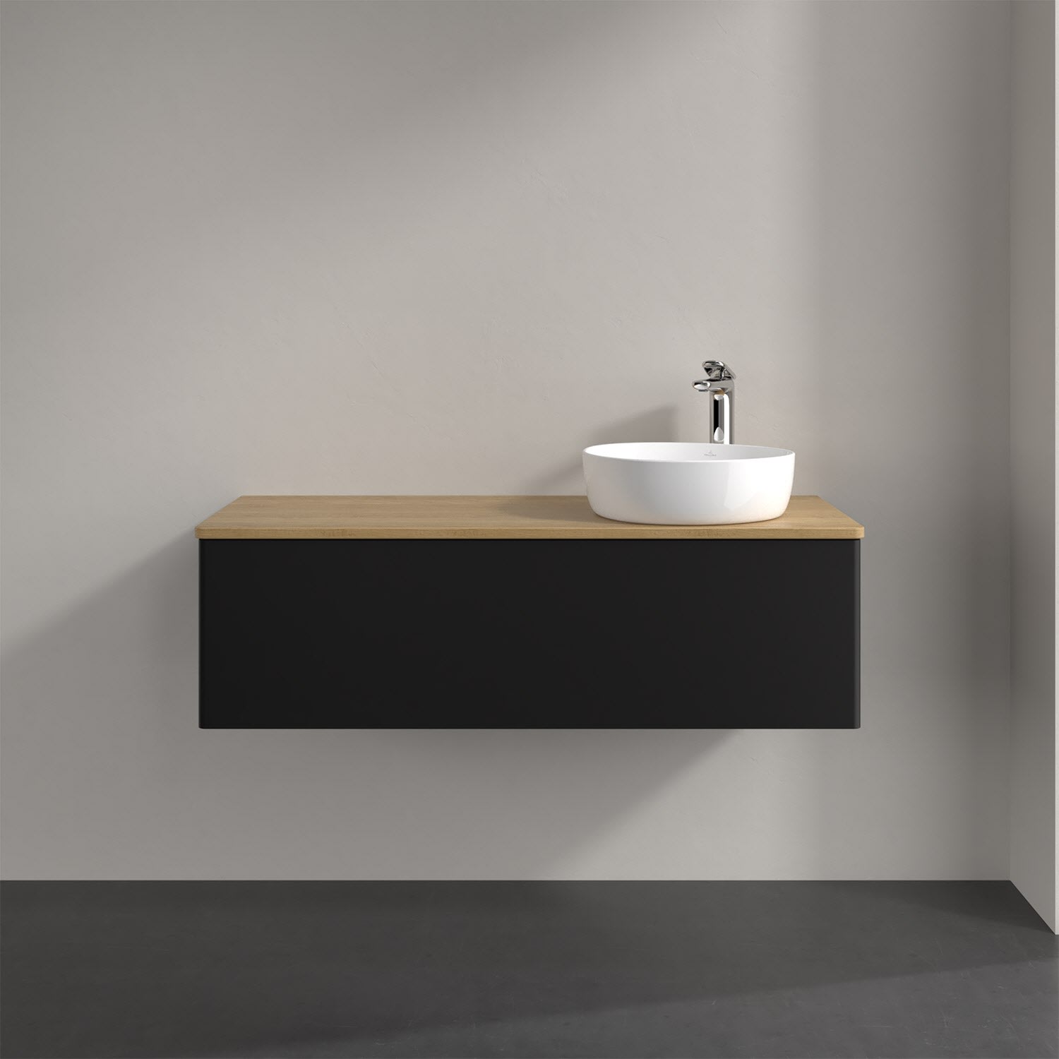 Villeroy & Boch Antao Waschbeckenunterschrank, 120 x 36 cm, 1 Auszug mit LED-Licht, Front ohne Struktur, mit Hahnloch, für Waschtisch rechts